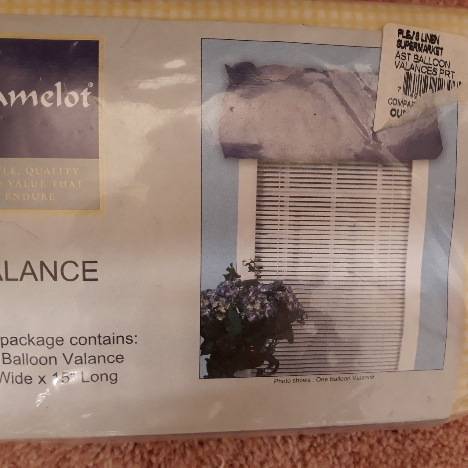 Never used, new..still in original package; real cute yellow checkered valence for a window.
