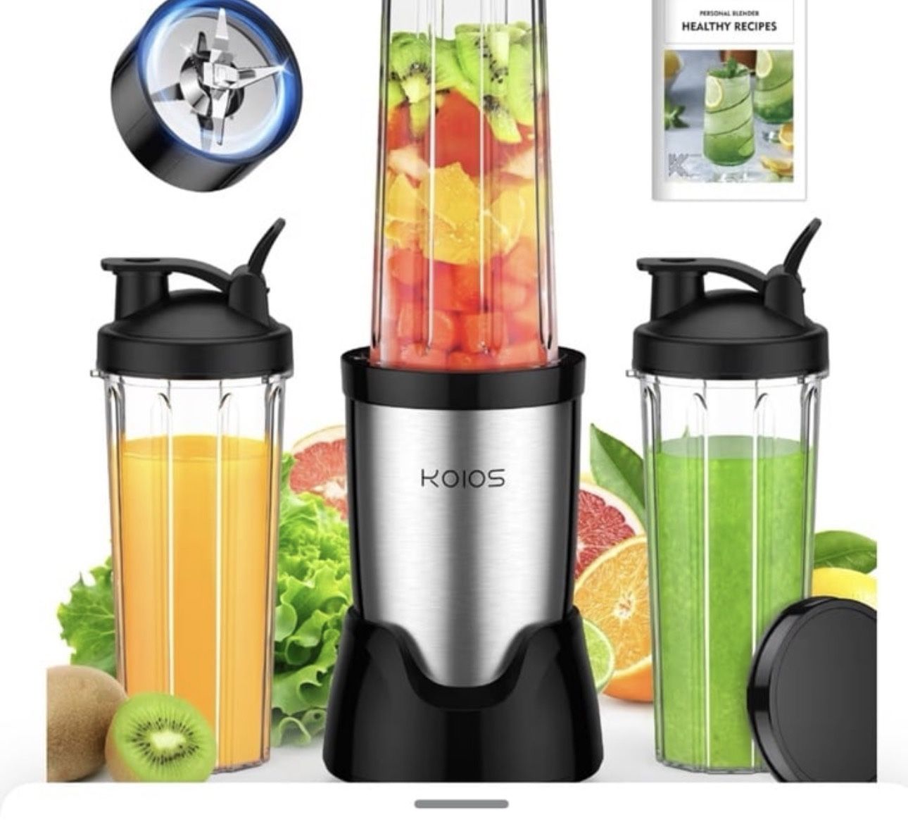 KOlOS Blender for Smoothies,Personal Blender for Shakes and Smoothies with 3 * 22oz To-Go Cups,22000 RPM Smoothie Maker,Detachable 6-leaf Blade Portable Blenders for kitchen, Black