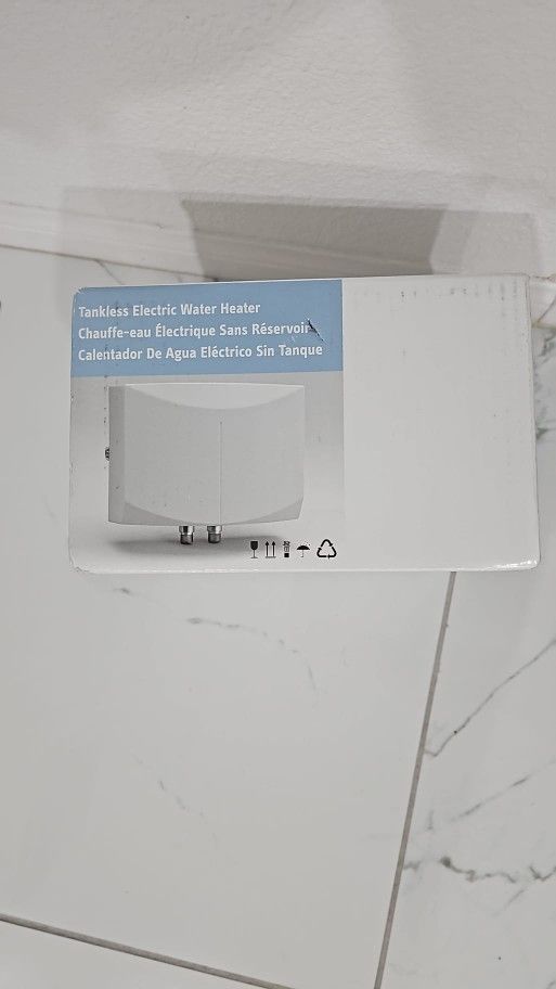 Tankless Electric Water Heater. No venting required. Mounts up or down. Safety high-limit with manual reset. Standar 3/8" flex pipe connections. Brand New, Unopened Box. Willing to negotiate price.