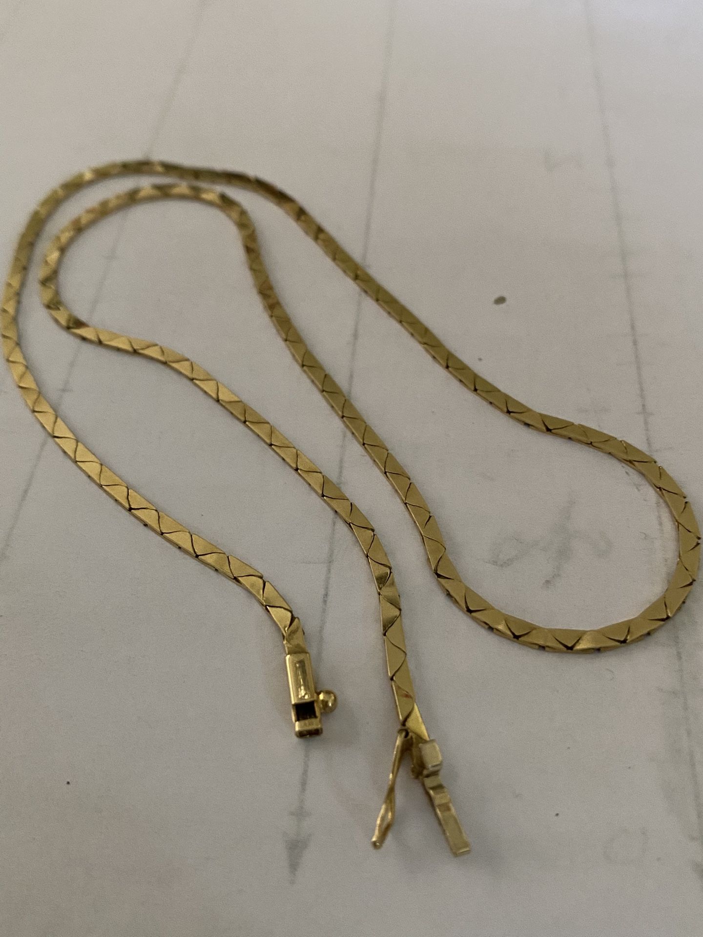 14K Italy REAL Gold Necklace very beautiful not sure what link it is. 18" inches long it weighs 10.13g Need to see in person chain is in very beautiful condition with an excellent secure clasp. $910.00 I’m selling a beautiful necklace not Gold by the gram. PICK UP ONLY FCFS area of North Glendale 51st ave & Union Hills