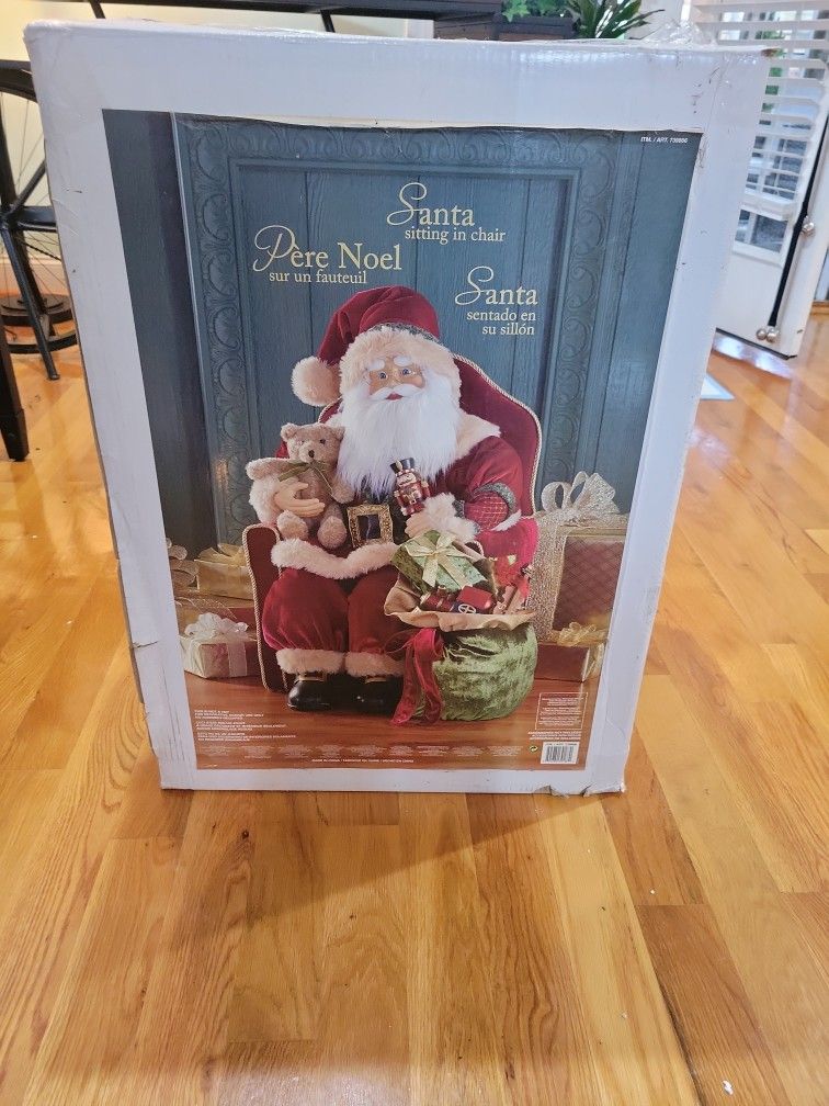 Santa in chair....some cat scratches on left side of chair....