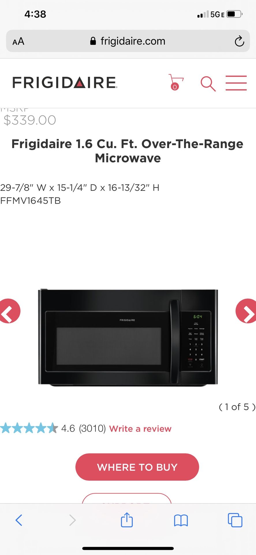 Brand new Frigidaire 1.6 Cu. Ft. Over-The-Range Microwave 29-7/8" W x 15-1/4" D x 16-13/32" H Retails at $339