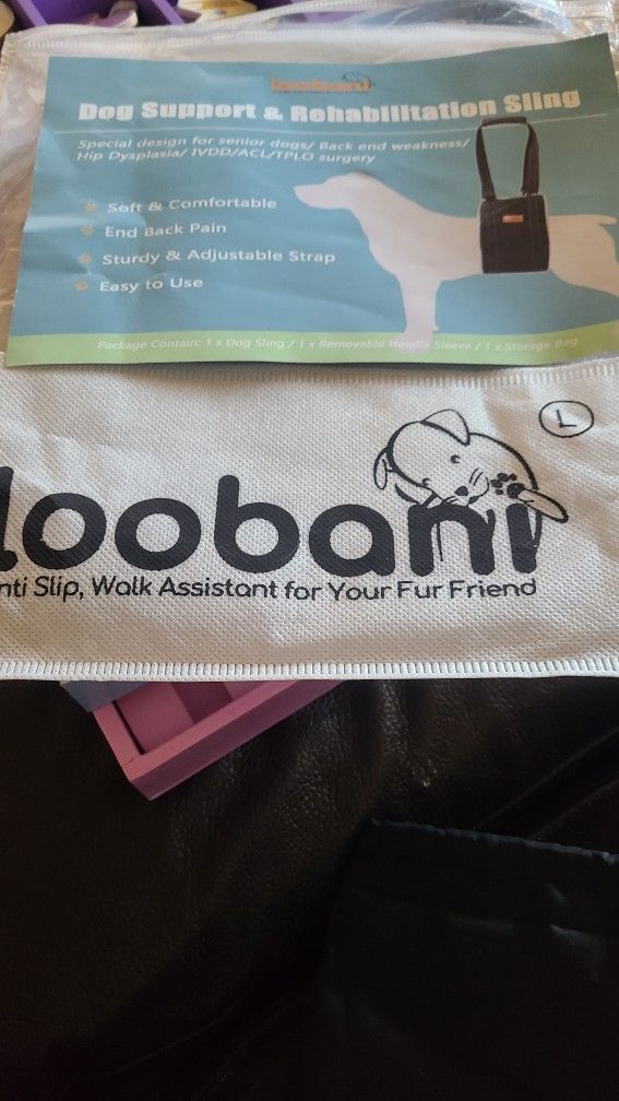 Like new sling with adjustable straps, fleece lining, storage bag for medium to large dog.