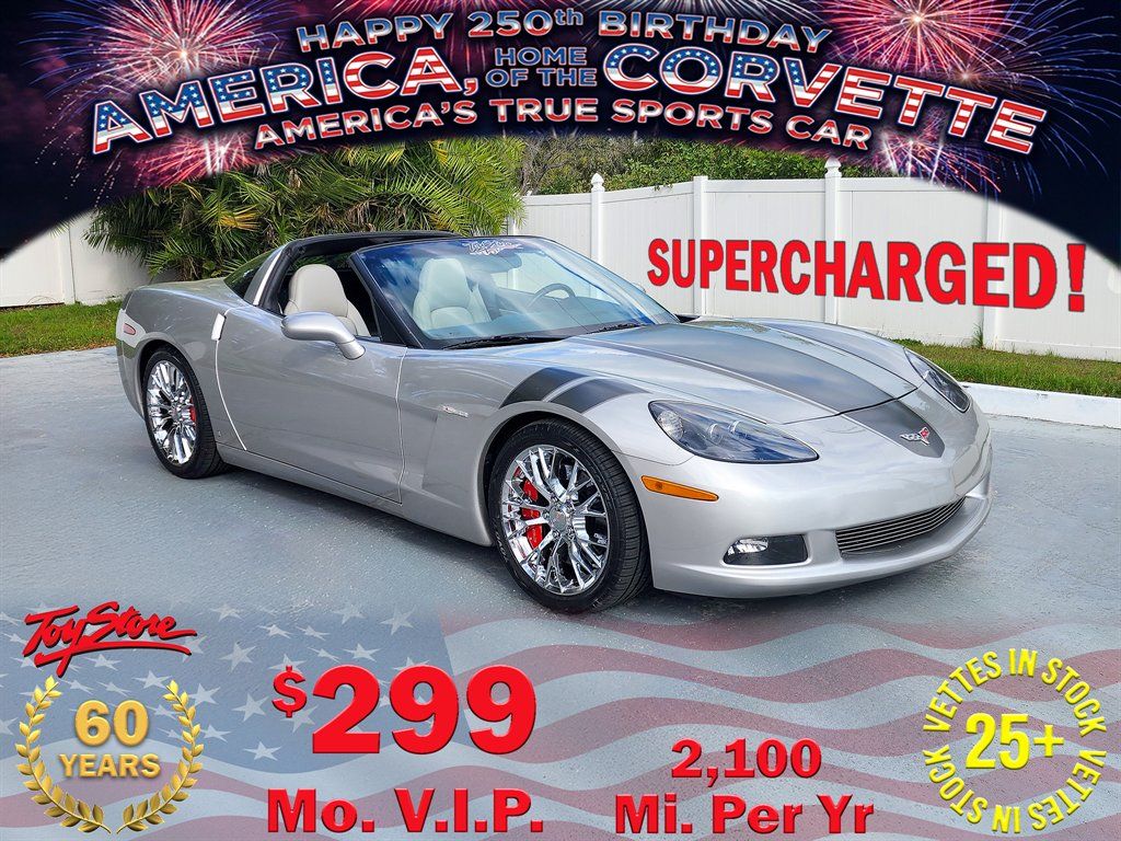 CORVETTE 2008 COUPE, Machine Silver with Titanium leather interior and removable roof panel, 6-speed automatic paddle shift transmission, Chrome ZR1 style wheels. 3LT Equipment Package, Dual Power Sport Seats, Head Up Display, Memory Package, Heated Seats, AM-FM Stereo System with CD player, Navigation System, Steering Wheel Audio Controls, OnStar, Universal Home Remote, F55 Magnetic Selective Ride Control, Custom Graphics, Dual Zone Climate Control Air Conditioning, Active Handling, Traction Control, Driven on average approximately 1,600 miles per year, Previously sold by Toy Store to a Florida retiree! $15,000 in options! This stunning one of a kind LS3 Corvette is enhanced with a Pro-Charger supercharger. This car qualifies for our exclusive V.I.P. financing plan. Compare at $34,875 - Sale $29,875 / $329 mo. V.I.P. Call for details. Toy Store, Largo, Fl. 727-585-6000, www.vettenet.com. Open 6 days, Sunday by appointment. Trades considered. WE BUY CLEAN CORVETTES!!! Shipping assistance available to 48 states for $489. We can help with less than perfect credit. SELLING QUALITY LOW MILEAGE CORVETTES FOR 60 YEARS! EXPECT TO BE IMPRESSED PERFORMANCE SPOKEN HERE