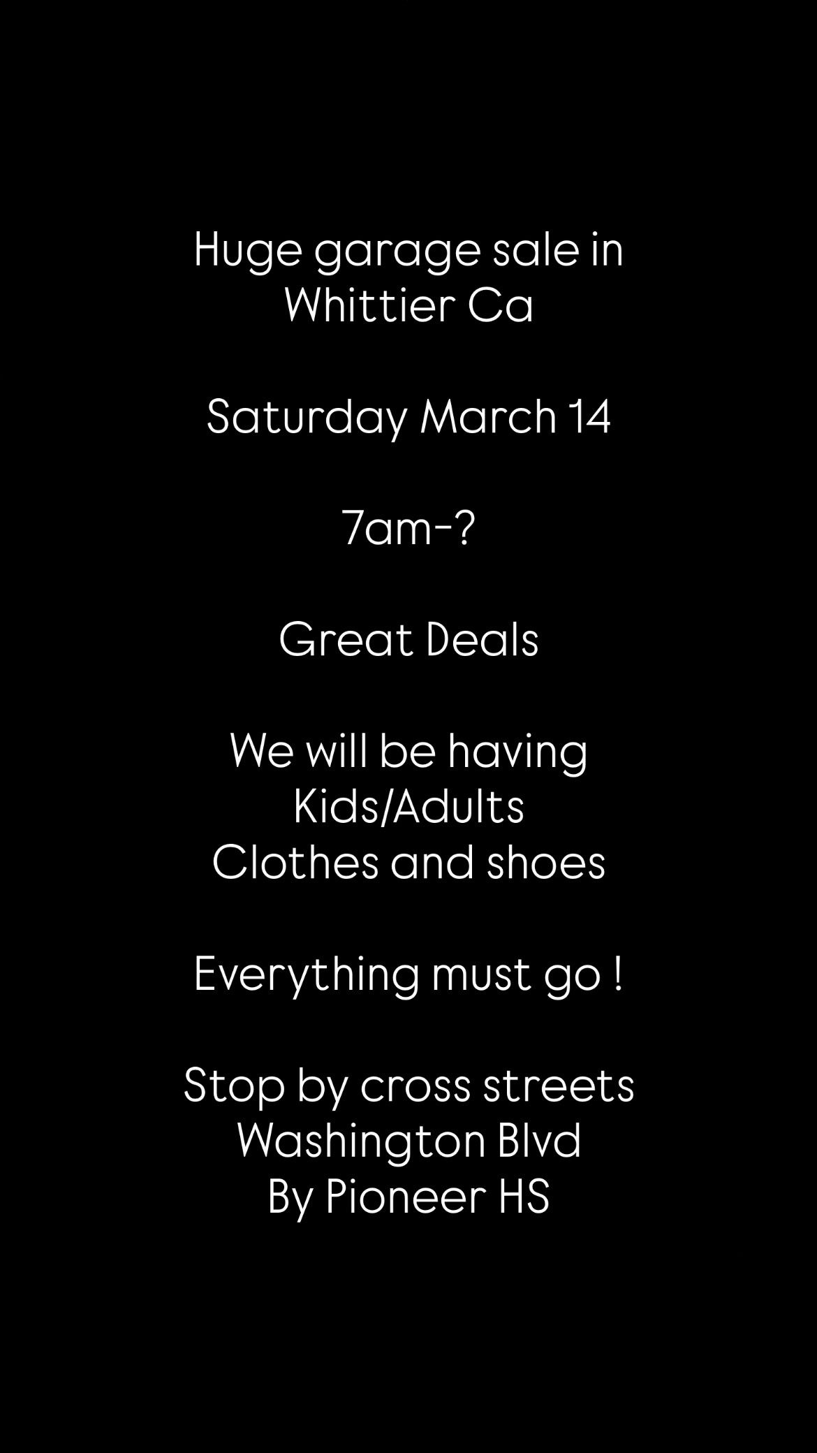 Garage Sale March 14 7am