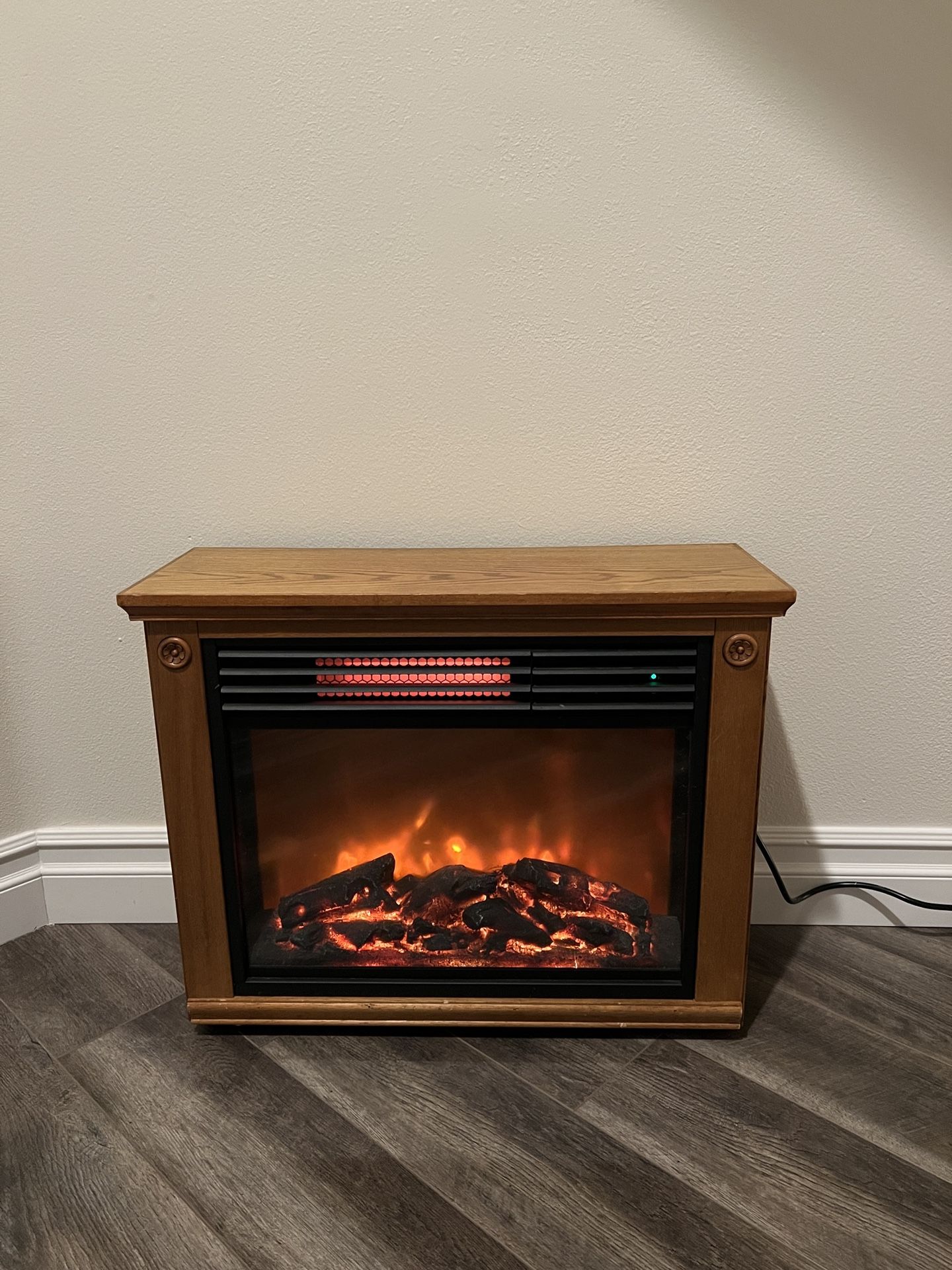 28.5" wide x 11" deep x 22.5” tall - Heats up to 90 degrees - Fireplace light can be turned off while keeping heat on