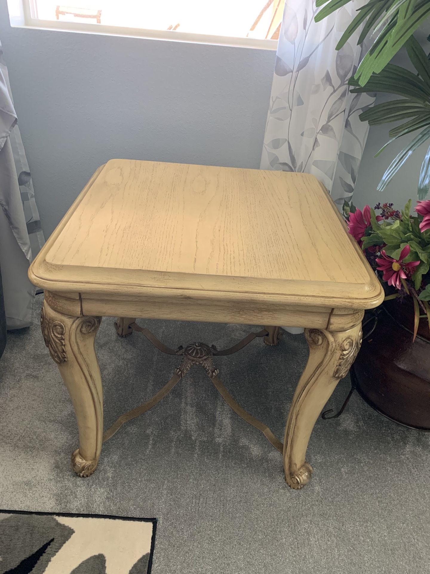 Here I have two end tables that can be used to place various room decor upon as well as lamps or other lighting for rooms as well as a glass top center table to make any room stand out, both are in perfect condition, and were hardly used as their placement was in a guest lounge room within the house