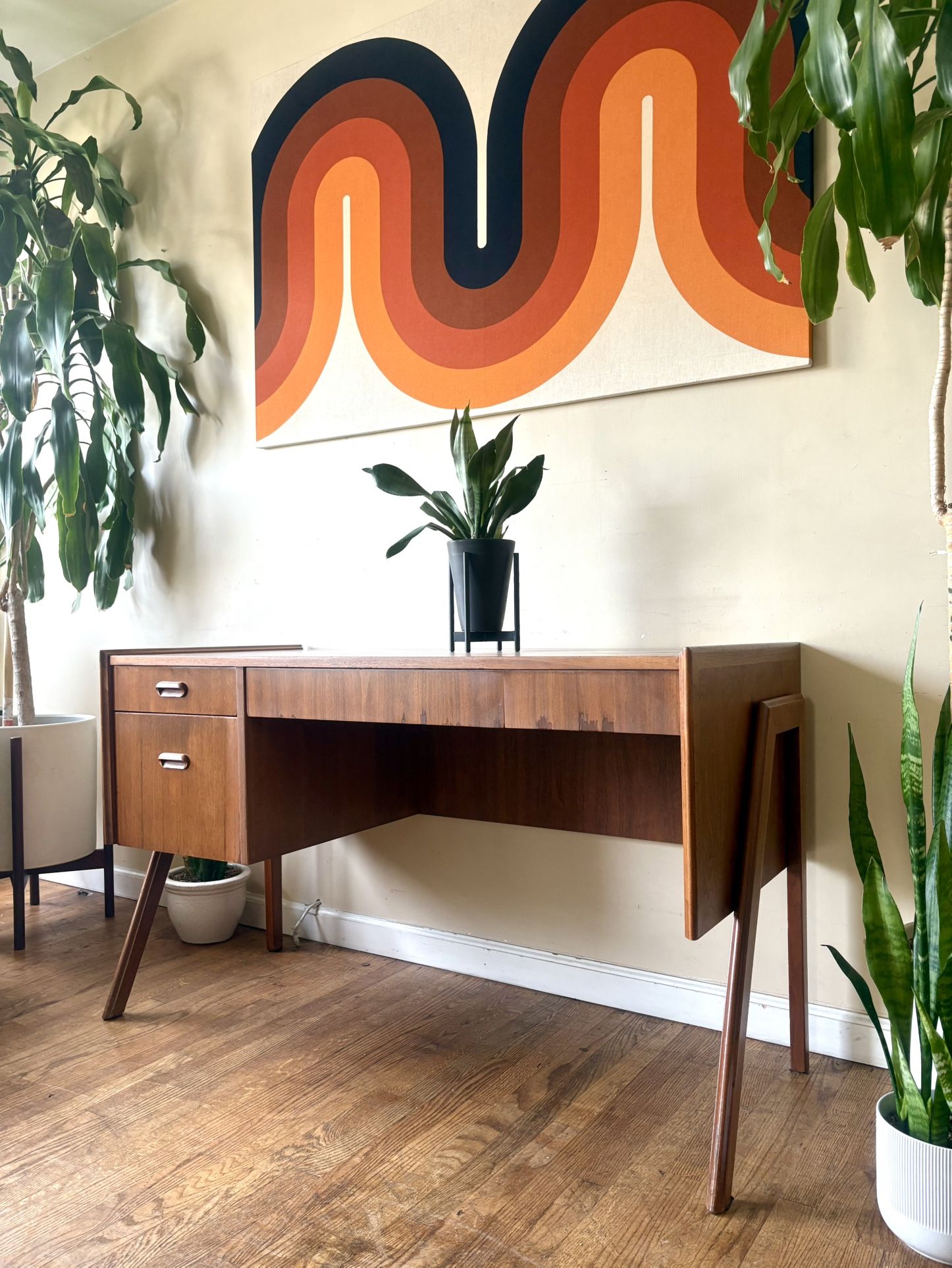 π'Tis The Season of Savings! SAVE 20% OFF FOR THE HOLIDAYS!! Here we have a Stunning Mid-Century Modern Danish Teak Desk. Featuring 3 drawers for storage space, a beautiful teak wood grain, sculpted wooden handles, and a striking design! Professionally refinished and ready for a new home!! Dimensions: 48L x 22W x 30H AestheticaMCM #modern #desk #minicredenza #records #vinyl #instagood #sale #instasale #homeliving #mcm #dreamy #dreamlifestyles #upscale #refine #luxury #midcenturydesign #midcenturyfurniture #midcentury #mcm #madmenstyle #Midcenturymodern