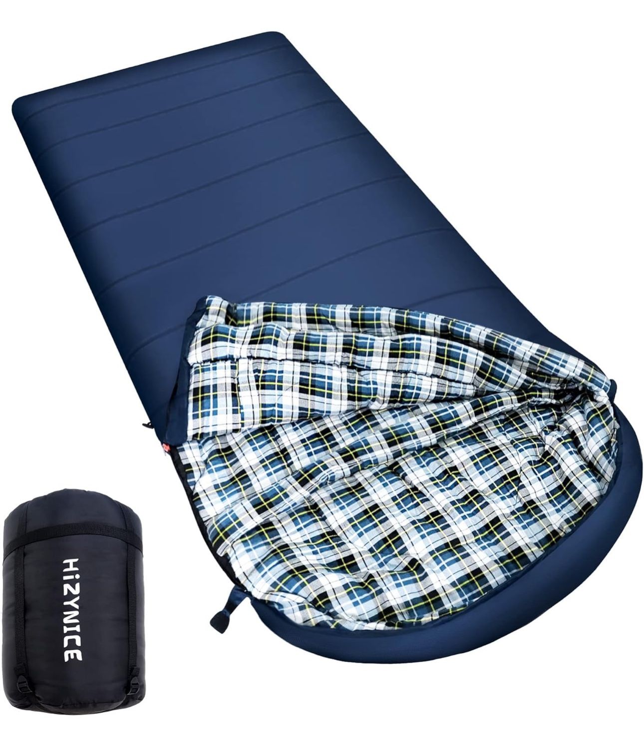 HiZYNICE 0 Degree Sleeping Bag 100% Cotton Flannel for Adults Camping Big & Tall