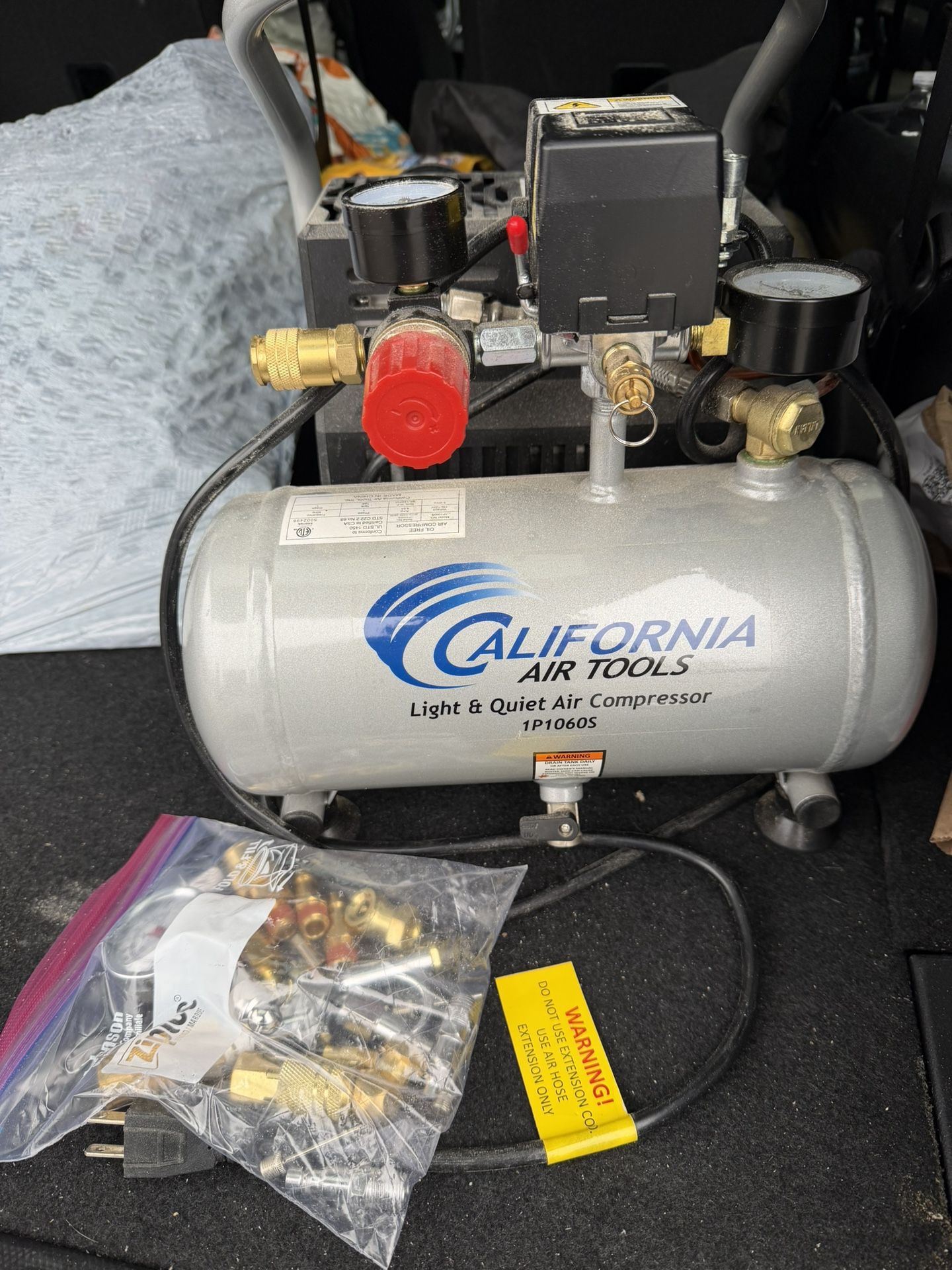 In really good condition. Just need dusting. Complete accessories. california air tools 1p1060s