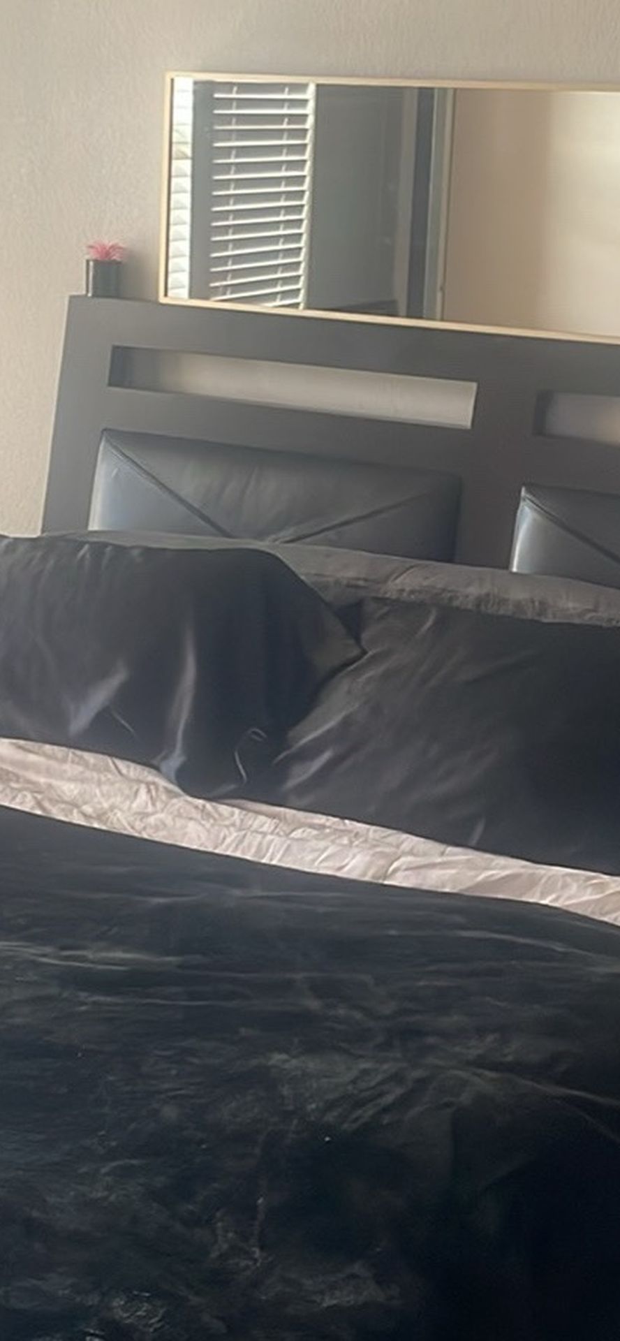 Good condition, kinda just want it gone lol just looking for a different vibe in my room now. I can take it apart for you just need you to pick it up. Super easy assembly and few pieces to move. Mattress not included