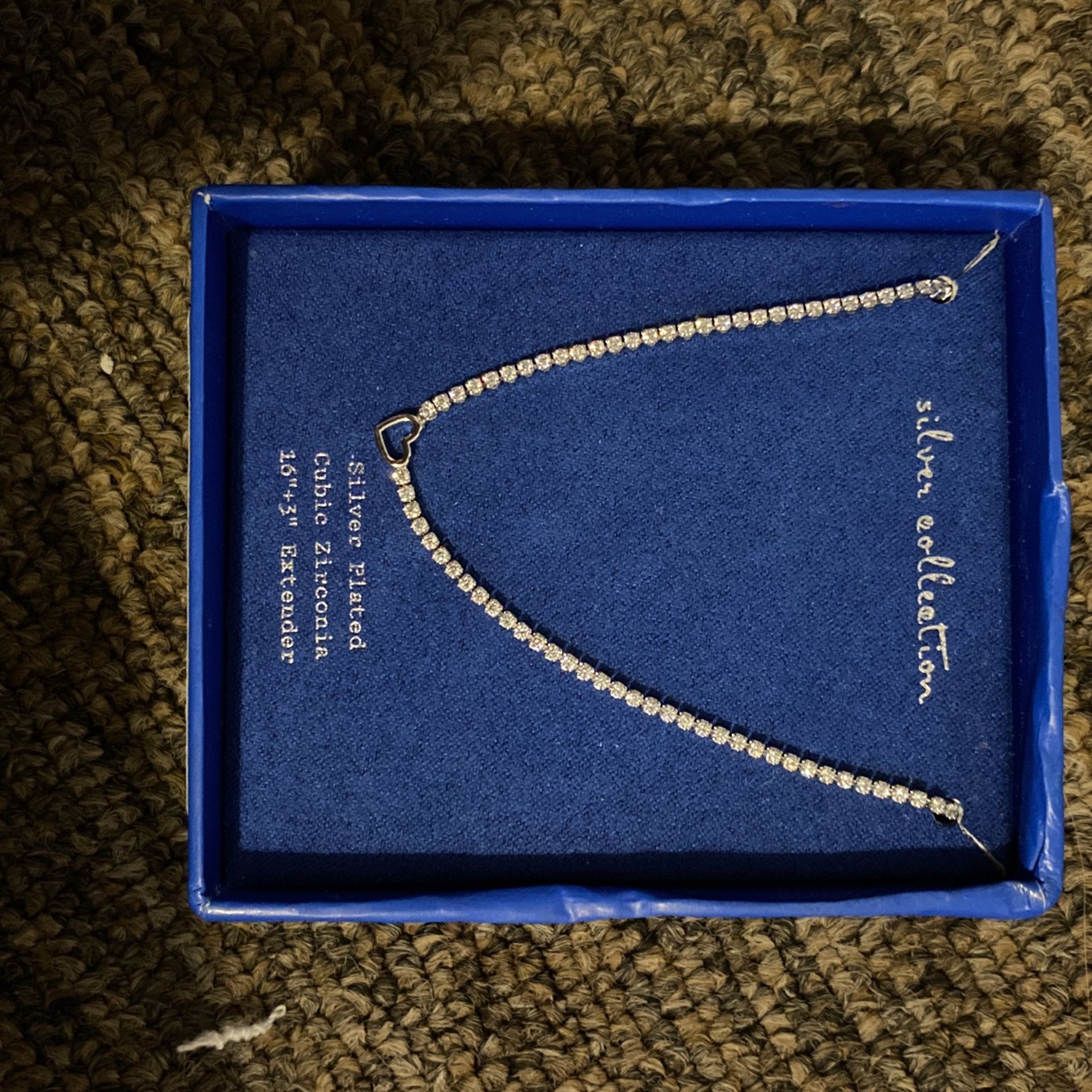 Dainty Heart Necklace Silver Plated Cubic Zirconia