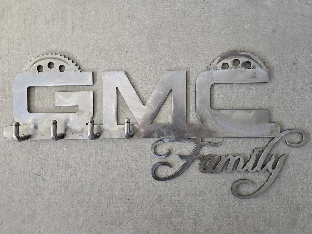 Custom metal GMC Family key holder or wall hook rack. Includes four hooks for hanging items.