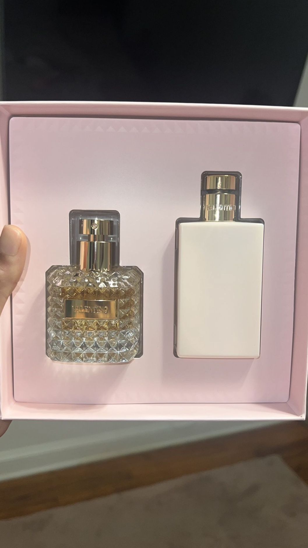 ****If it's still listed then it's available**** $55. I sprayed the perfume a few times. Didn't use the lotion at all. Smells nice, but just not my taste. Perfume 1.7 fl oz Lotion 3.4 oz