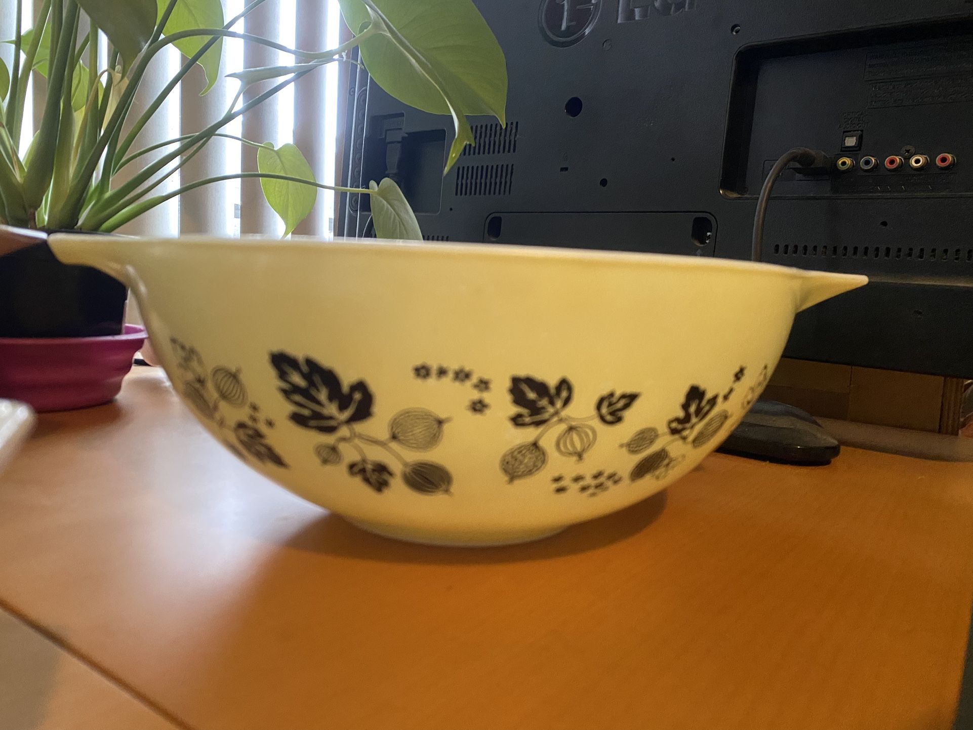Vintage Pyrex Gooseberry 444 Cinderella bowl in the yellow/black colorway. Beautiful condition with strong pattern and shine. Highly collectible. Pickup in Costa Mesa. $40