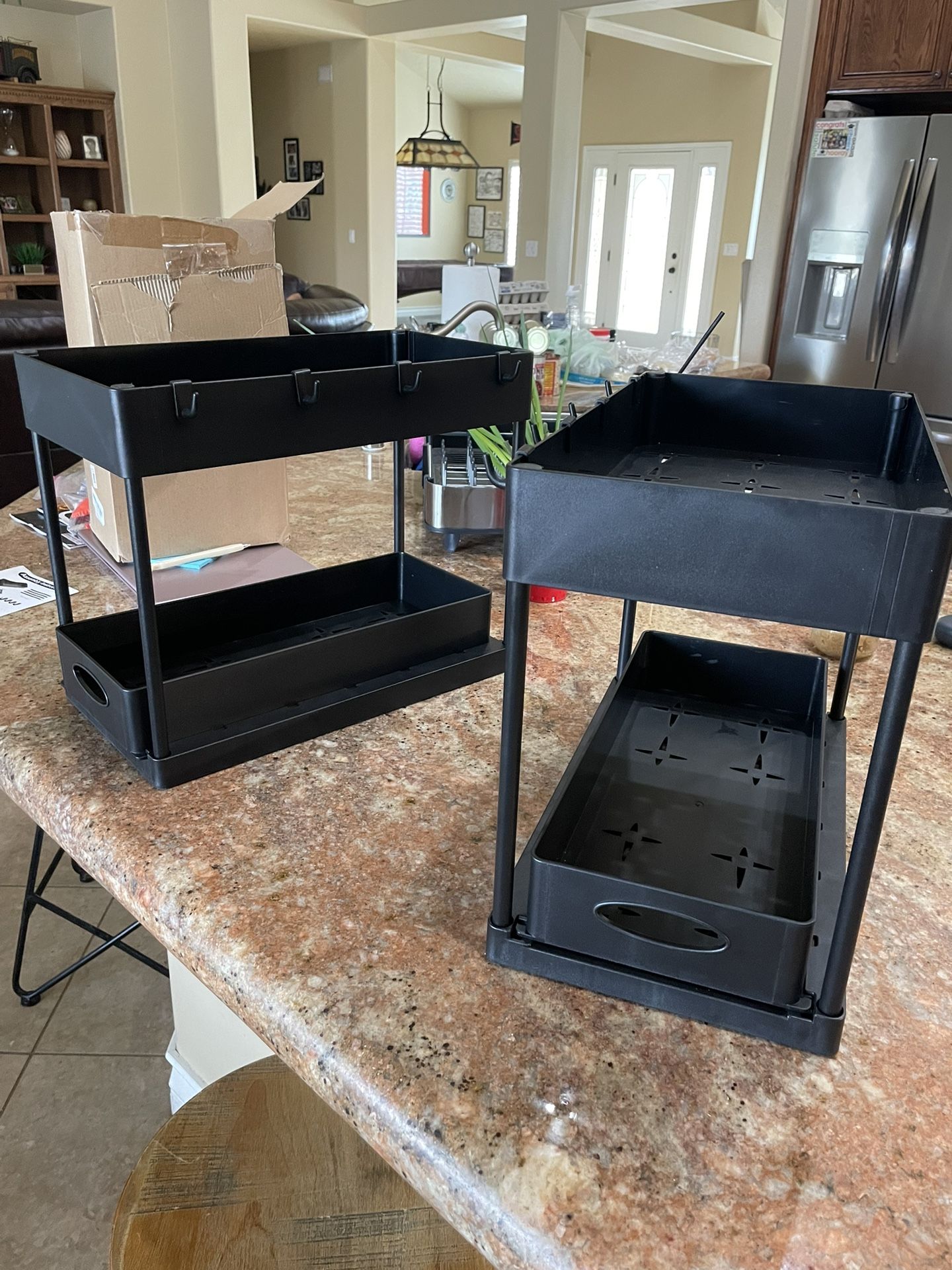 1 for $10 each Sink Organizer Double Layers Storage Rack for Kitchen and Bathroom Multifunctional Pull-out Design Space-saving for Toiletries and Spices Chic and Practical Home Organizer
