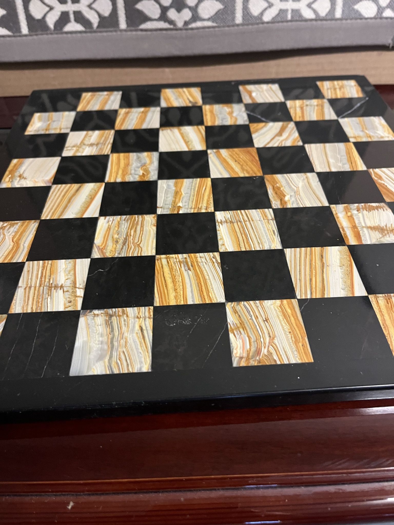 $$ Price Reduced$$ GARAGE SALE Sat 6/21 - Sun 6/22 7am- 4 pm Potters Ct Vacaville Vintage Marble Chess set Pink Rose Onyx Black Gray Stone, 10” board 32 pieces
