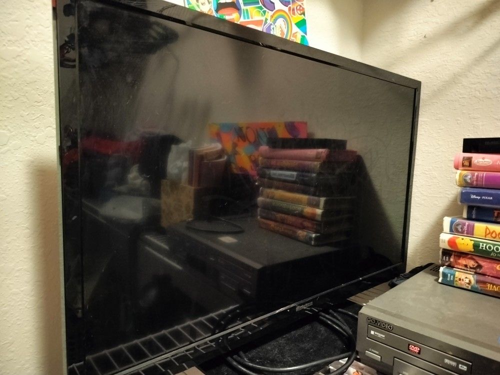 55 inch t.v little blue line down the middle you can't even tell when it's turned on Good for a playroom or a kids room!