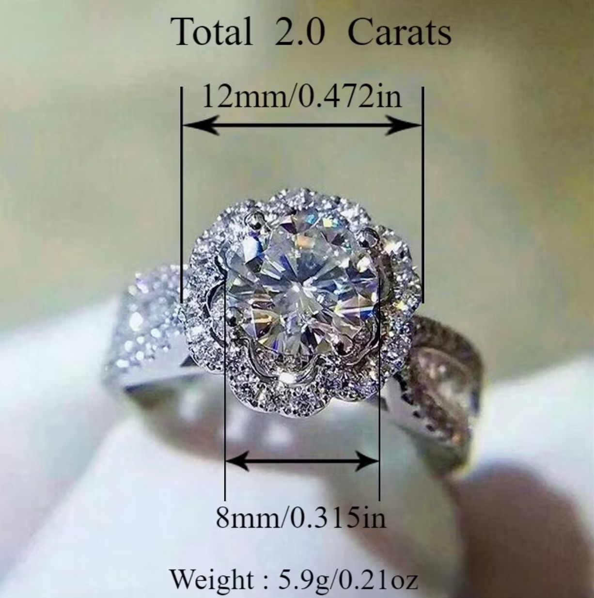 Luxury 925 Silver 2 Carat Round Moissanite Crown Ring Perfect for Engagement, Wedding, Anniversary 7