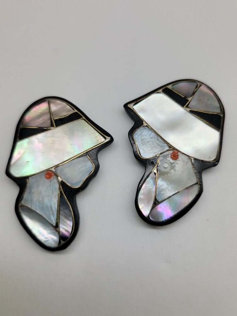 This is a pair of illustrious art Deco earrings.They can be made either post sergical steel or adjustable clip earrings. The abalone shell is inlaid in resin. Therefore there is no weight. It is. The shell is iridescent and will go with any color in your wardrobe. The size is Approximately One and a 1/2. Long by half an inch wide. From a smoke Free pet free Home. Please click on my profile and see all of my other goodies. Thank you for looking and have a great day