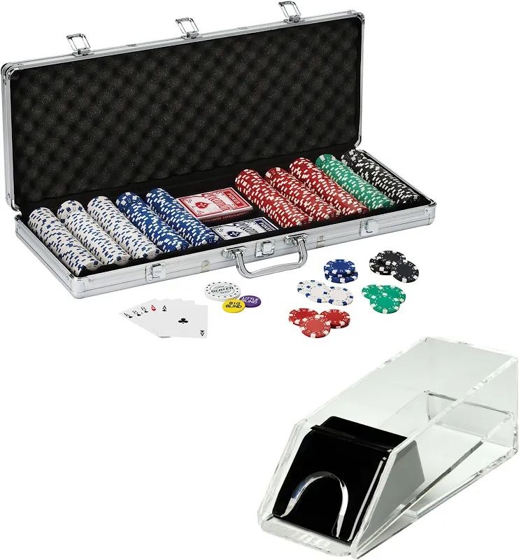 Texas Hold em Poker Style Set Comes With Dealer Cards Dice And Poker Chips w/ briefcase Traditional Poker Set Comes with Dealer cards Dice and Poker Chips w/ briefcase All instructions are included Great condition was never used Great for people who love to gamble Or wants to become a dealer