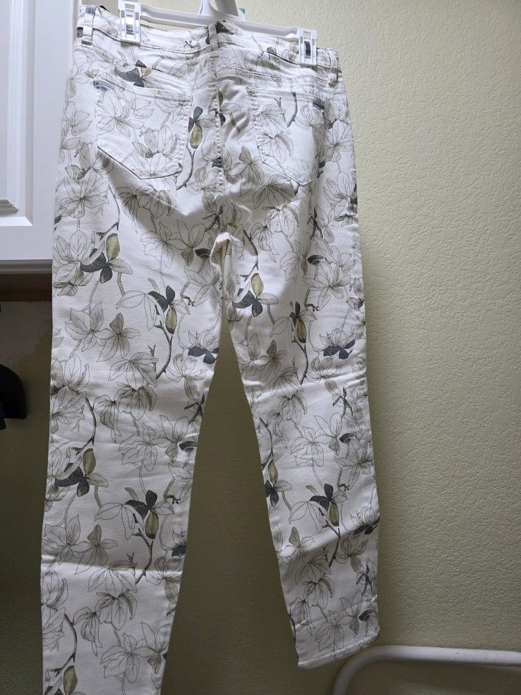 High rise, soft stretch, ankle skinny white floral gorgeous jeans. Size 12