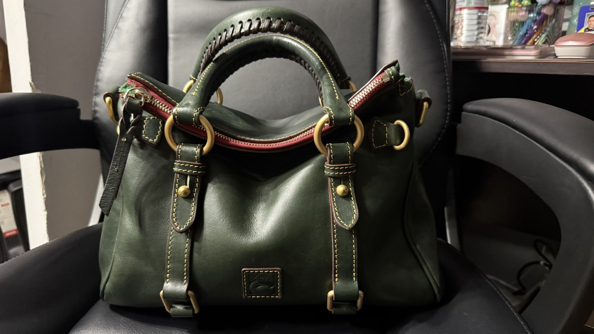 Beautiful Dooney Florentine Satchel in Olive. This color is no longer sold. In like new condition, only used a handful of times. *please note, I took the tassels off*