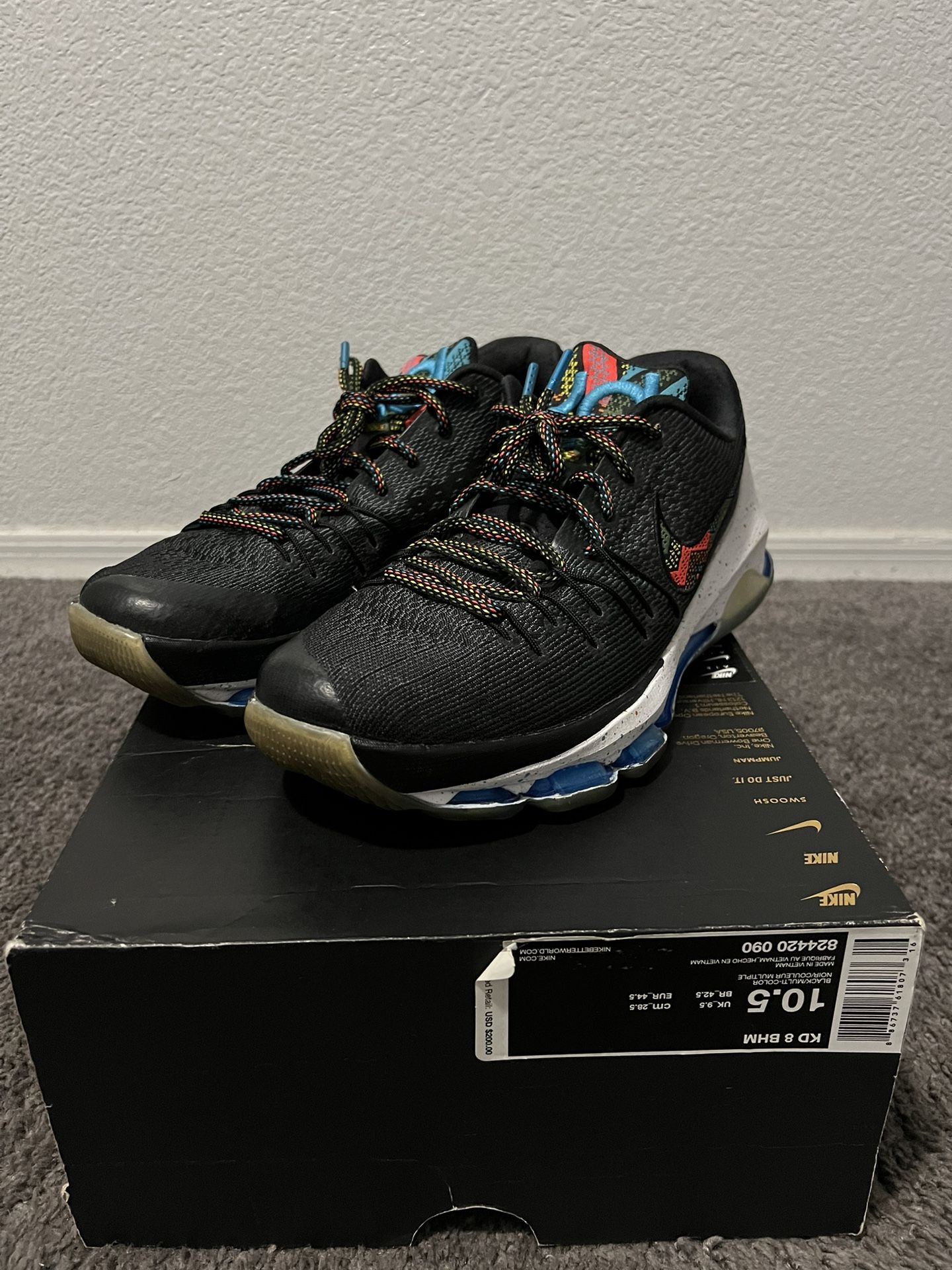 KD 8 2016 BLM (Black Heritage Month) color way Size 10.5 Mens Never hooped in, just casual worn Worn a couple times, comes w KD BHM card 120 obo Jordan Retro Nike Air Max Dunk SB Supreme Babe Union Off White J Balvin Travis Scott Clot Undefeated A Ma Maniere Social Status