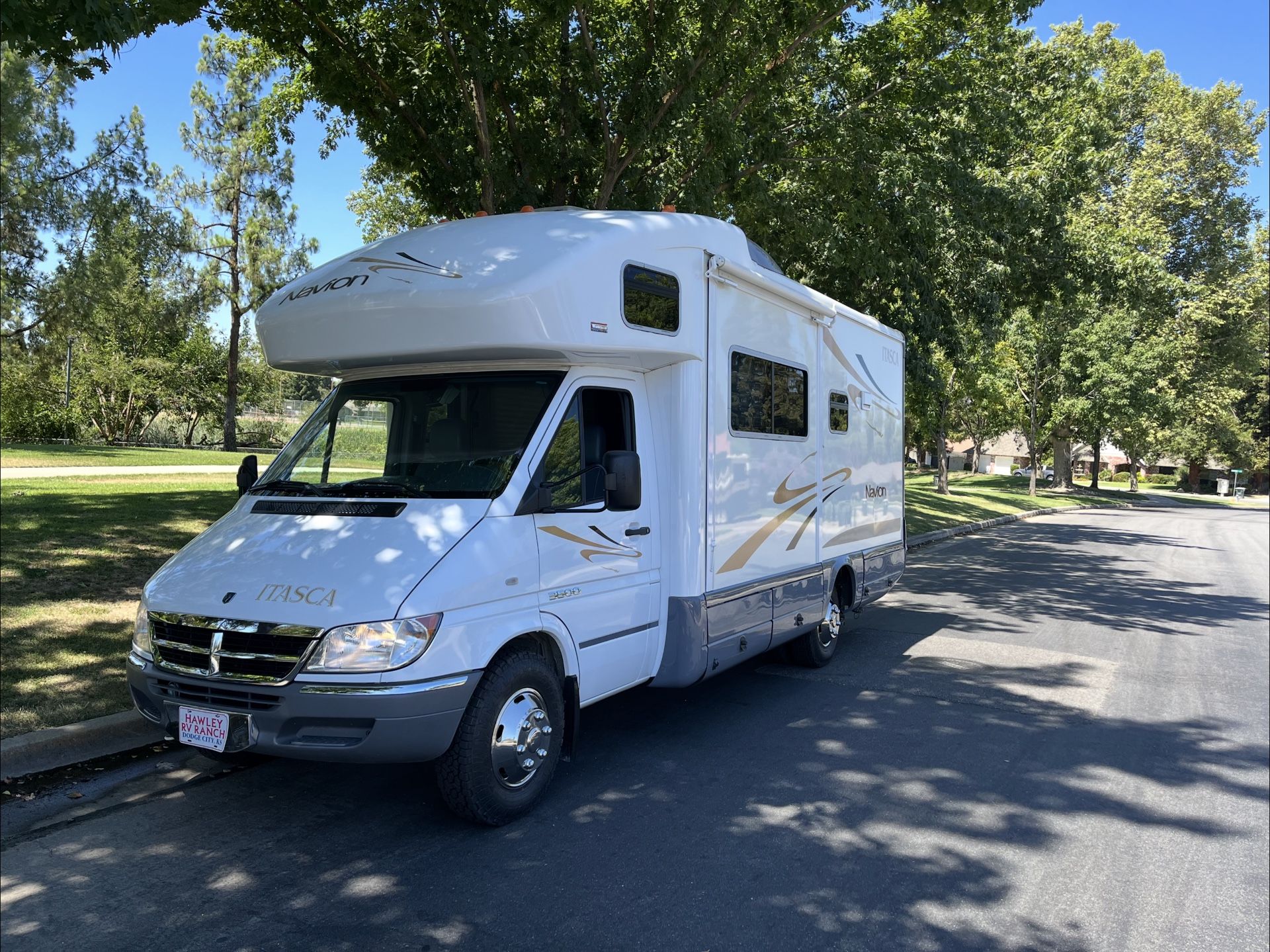 2007 itasca Navion is a class C motorhome with sleek design and impressive performance. With a little less than 10,000 miles this RV is practically new and ready for your next adventure. It is compact and easy to maneuver on the road while providing you with ample space. Has brand new all terrain tires and still in the box cloth cover for exterior.