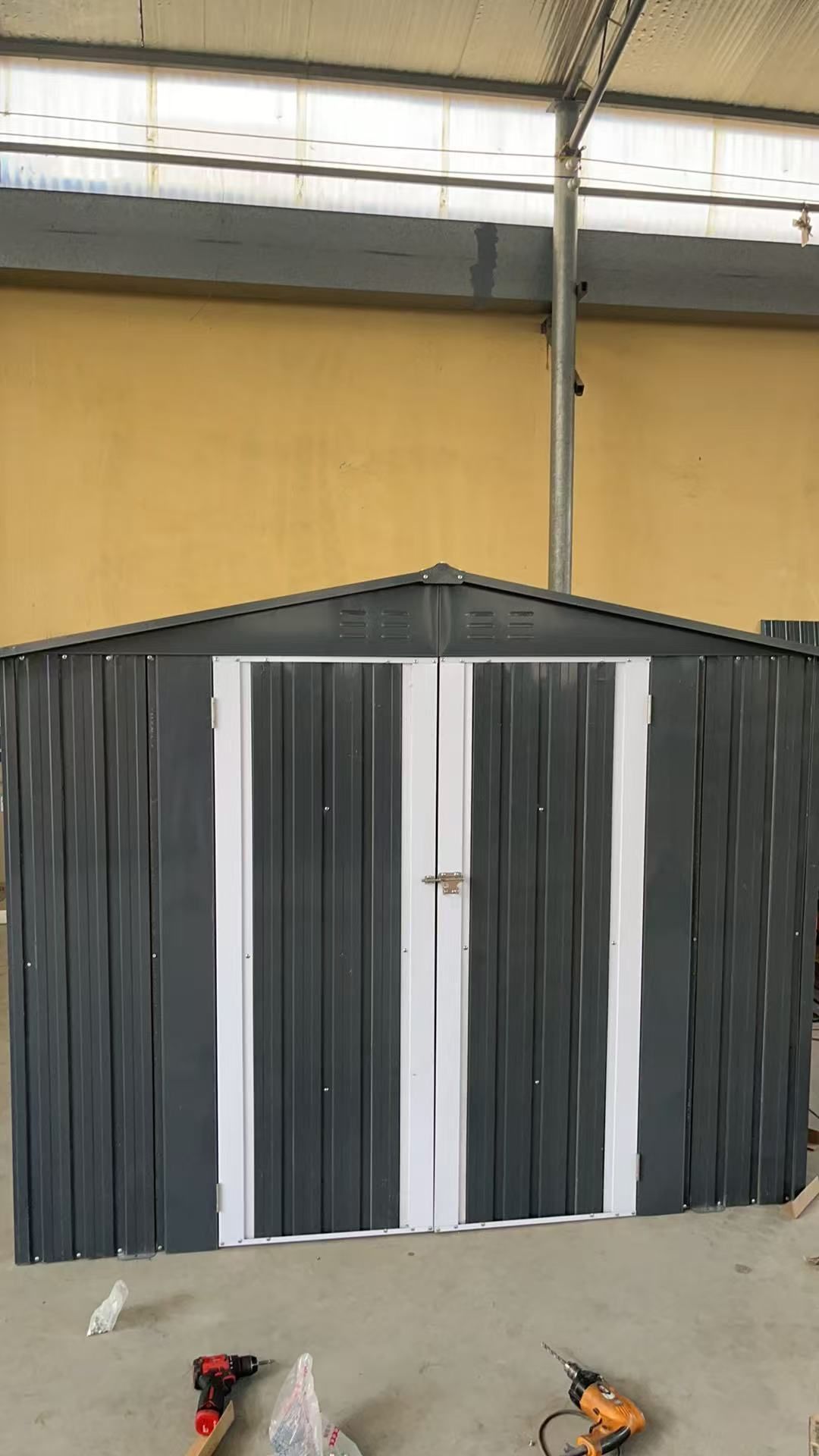 Metal Storage Shed with Double Doors, Heavy-Duty Galvanized Steel Outdoor Garden Shed for Tools, Lawn Equipment, and Yard Storage (72.8Hx68.9Dx87.8W) Package Size : Sub-item 1: W5006P397558 Package Quantity: 1 65.75 * 24.77 * 3.54 in. 56.43 lbs. Sub-item 2: W5006P397557 Package Quantity: 1 65.75 * 21.46 * 3.54 in. 66 lbs. Product Dimensions : Assembled Length (in.): 87.80 Assembled Width (in.): 68.90 Assembled Height (in.): 72.80 Product Weight (lbs.): 111.00 Heavy-Duty Galvanized Steel Construction – Built with rust-resistant, corrosion-proof galvanized steel panels and a reinforced frame to withstand rain, snow, UV exposure, and harsh outdoor conditions year-round. Spacious 72.8"Hx68.9"Dx87.8"W Storage Capacity – Offers ample room for lawn mowers, garden tools, bicycles, pool supplies, or seasonal decorations—ideal for backyards, patios, driveways, or side yards. Double Wide Doors with Lockable Handles – Features two wide-opening doors with secure latch handles (lock not included) for easy access to large items and enhanced security against tampering or weather intrusion. Sloped Roof & Ventilated Design – The angled roof prevents water pooling, while built-in air vents reduce condensation and improve airflow—keeping your stored items dry and protected from moisture damage. W5006S00001 CA7