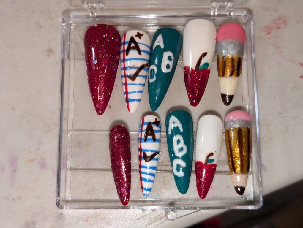 Medium stiletto press on set reusable handmade come with everything to prep and apply nails