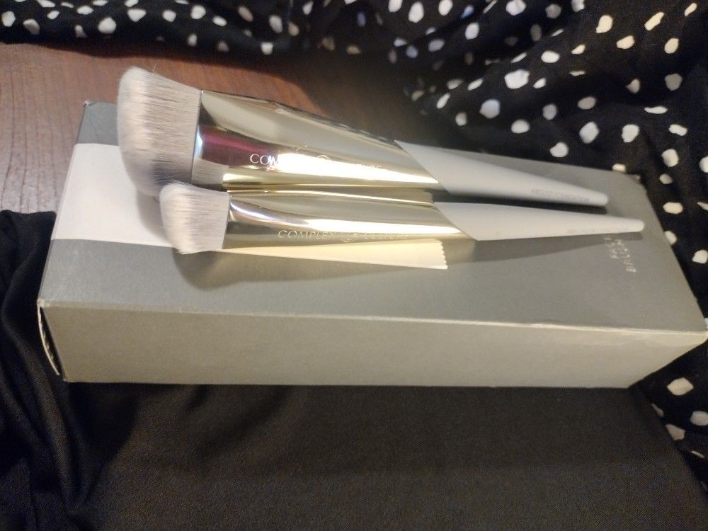 One missing from set of three but these two have never been used and come in original Complex Culture sustainable packaging. Really good, high quality, soft brushes! . Happy to bundle with other items! Free local delivery possible within reason