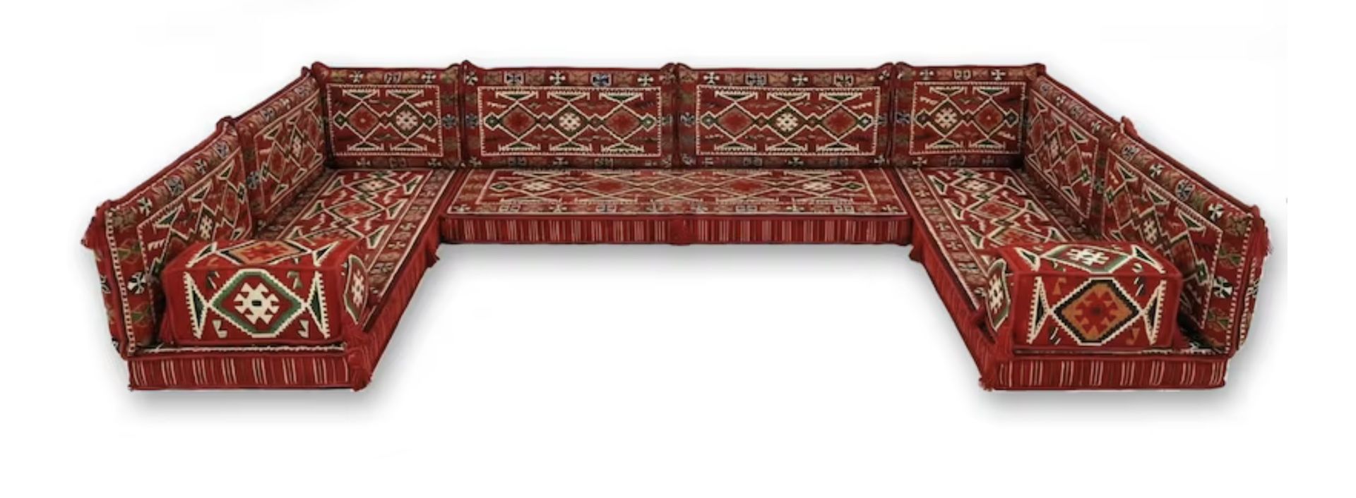 This set is used…everything is good except the 1 sofa zipper was broken after I washed and tried to fit the foam back in…the set includes: 2 sofa cushions 3 arm rest 10-11 pillows backrest