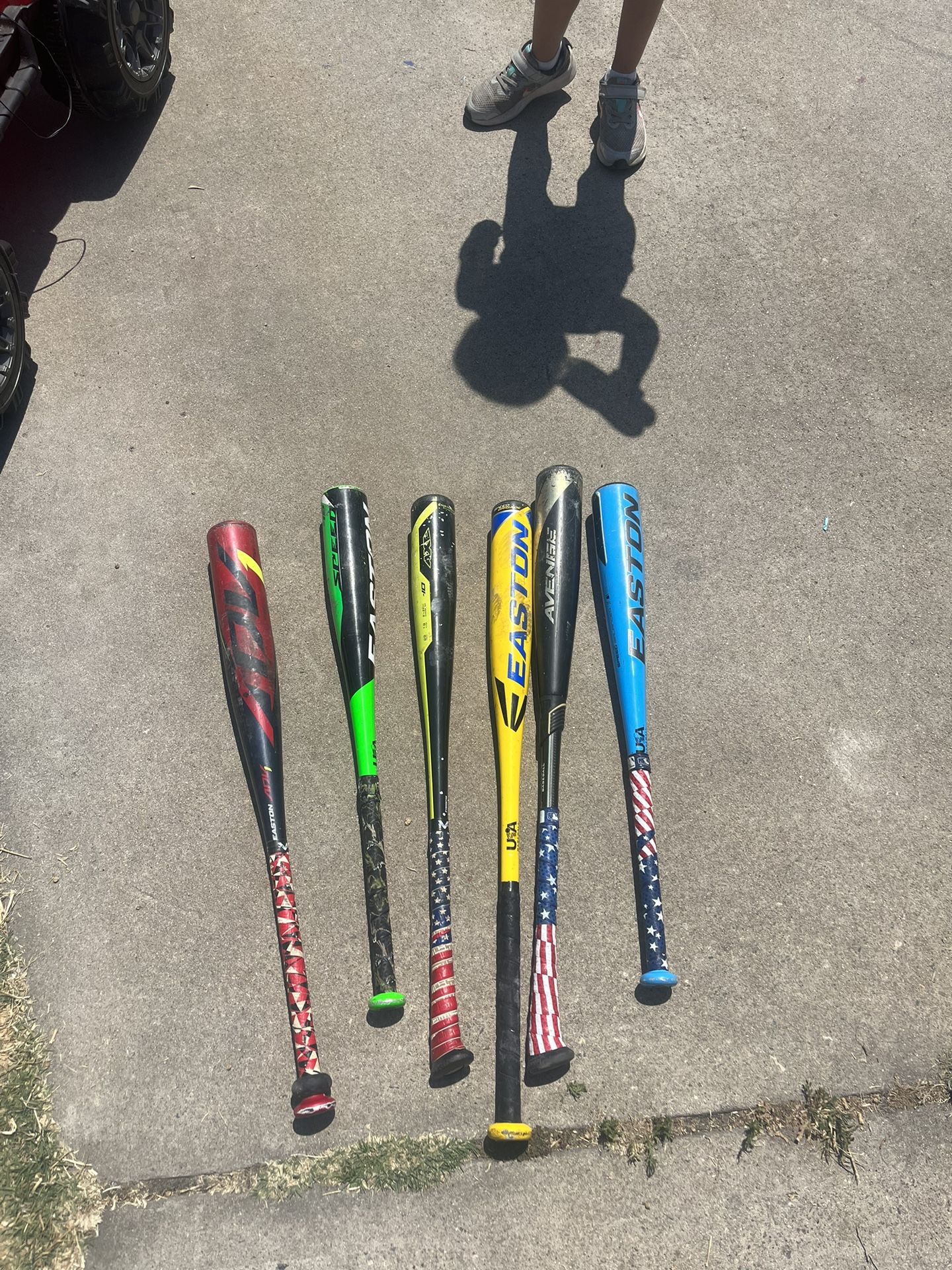 Used baseball bats Easton Adv 29 -12. $100 Green Axe 29 -10 $25 Black Axe 31 -10 $100 Blue TBall bat $20 Green Easton (slight rattle) 28 -10 $40