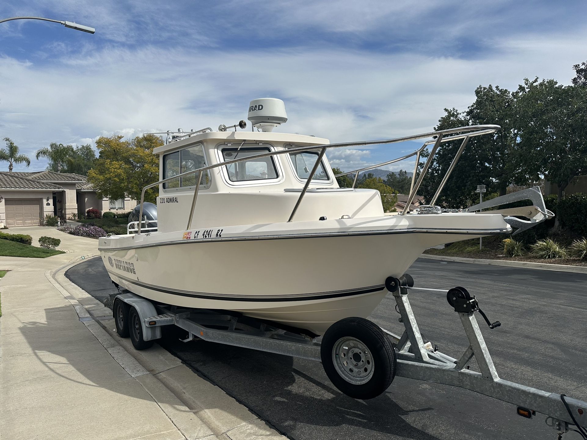 Defiance pilot house boat Yamaha 200 hp (1500 hrs still using) Simrad 9” touchscreen New batteries Recently serviced engine and trailer