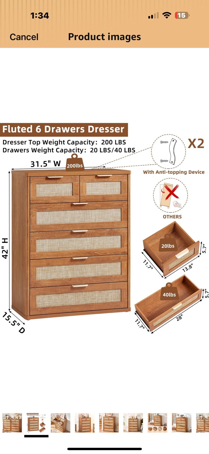 New in box Rattan Dres ser for Bedroom, 41" Tall Chest of Drawers,