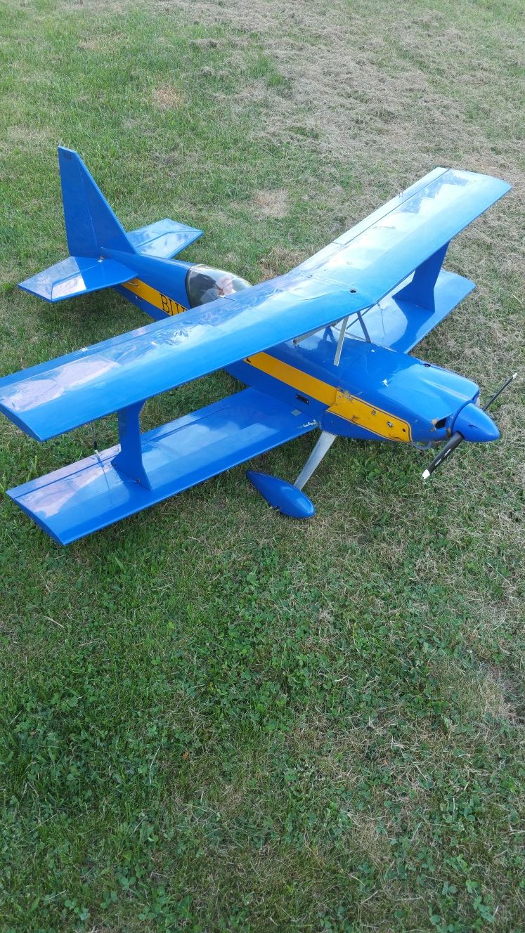 Dave patrick ultimate bipe in bluehawk scheme. Pumped O.S. 1.20 4 stroke. Ready to bind and fly with spektrum receiver. Also have a complete matching airframe for additional $