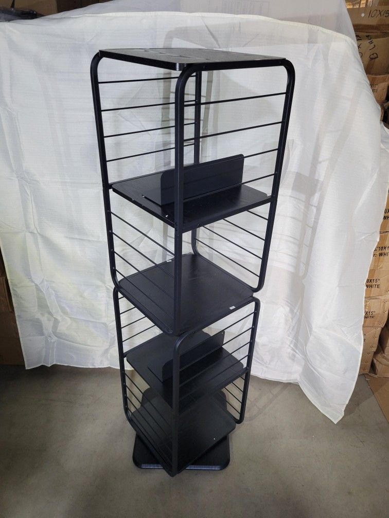 VASAGLE 4-Tier Rotating Bookshelf, Bookcase with Bookends for Small Spaces, Corner Shelf, Steel Frame, Ebony Black and Ink Black ULLS127B56