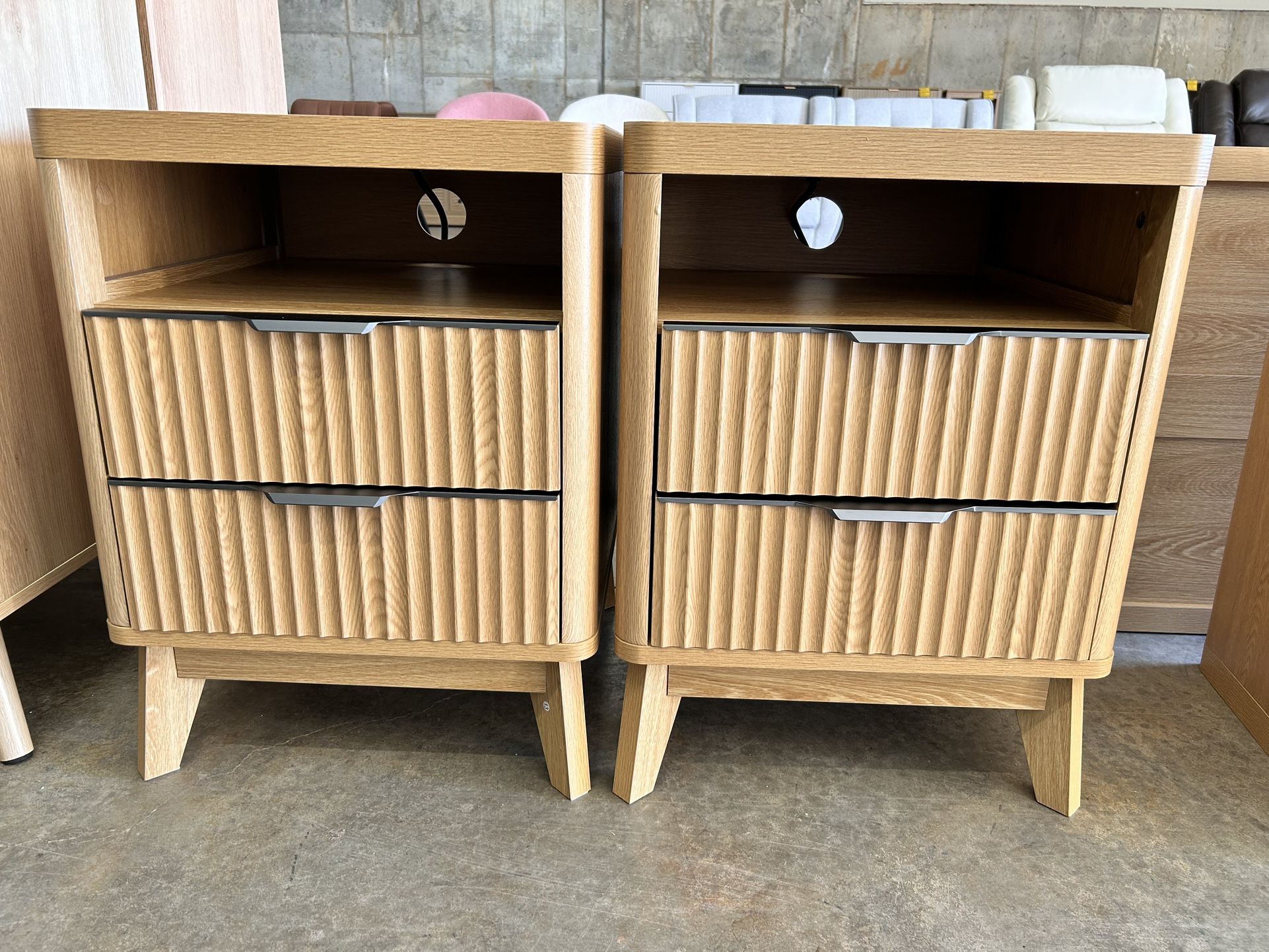 Set of two fluted nightstands with charging station, 18 inches wide and 2 open storage drawers ✨ $120 UNASSEMBLED $140 ASSEMBLED