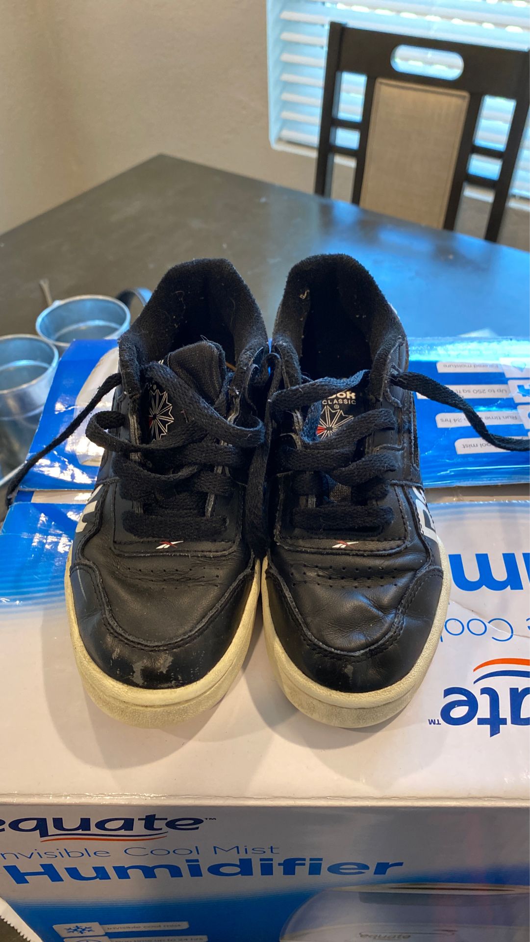 Black and white Reebok size 13 kids
