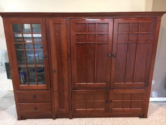 Purchased for almost $3,200, downsizing so need to sell, 79"x25"x59", TV opening with doors open - 40"x29.5", center channel speaker opening - 36.5"x6.5", area under TV is 14.5" high and will accommodate records, vertical upright drawer will accommodate 130+ DVDs, extra shelves