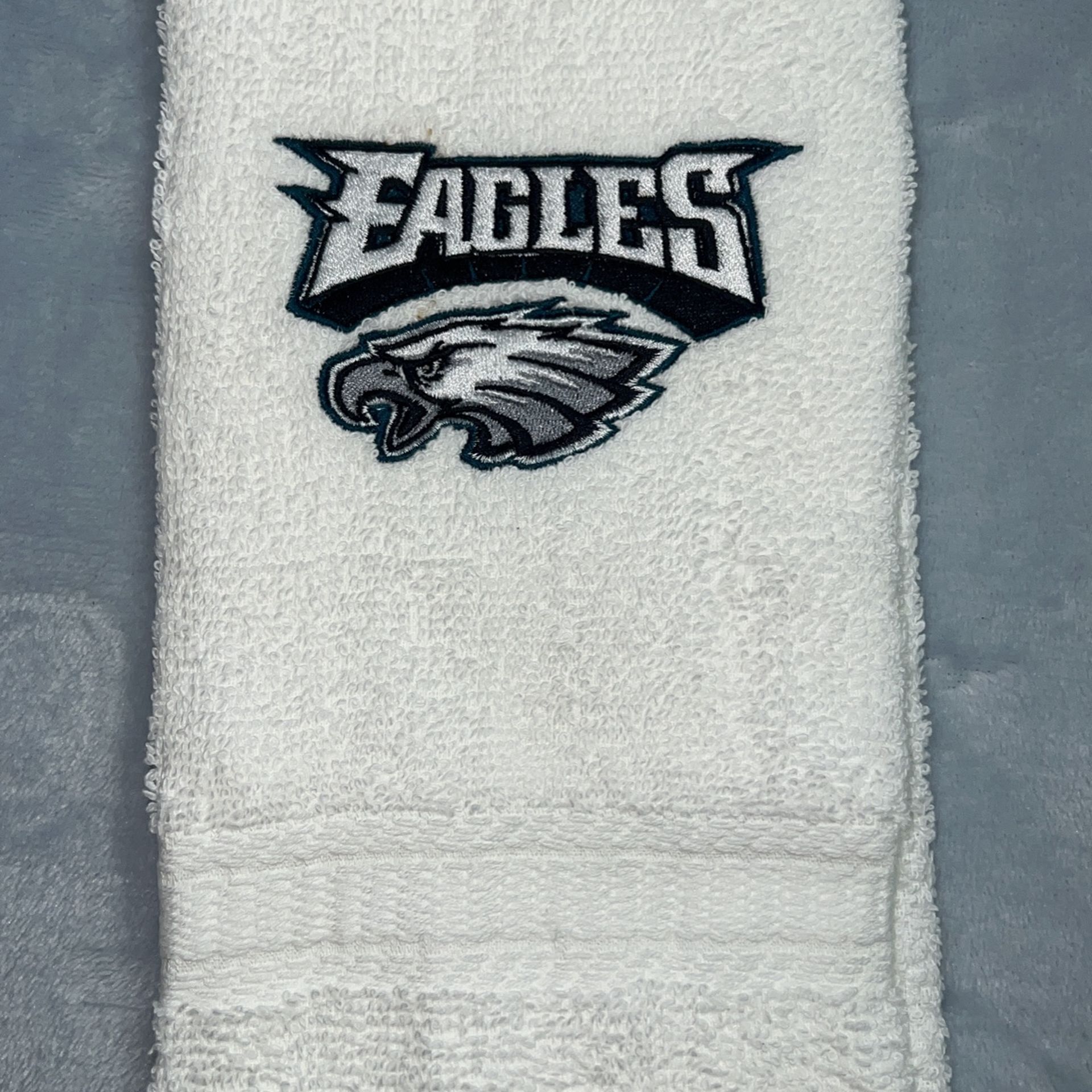 Embroidery NFL hand towels $15 each. Altanta Flacons Pittsburgh Steelers Miami Dolphins Kansas City Cahiefs New Orleans Saints San Fransisco 49ers Philadelphia Eagles Patriots Buffalo Bills Carolina Panthers Dallas Cowboys