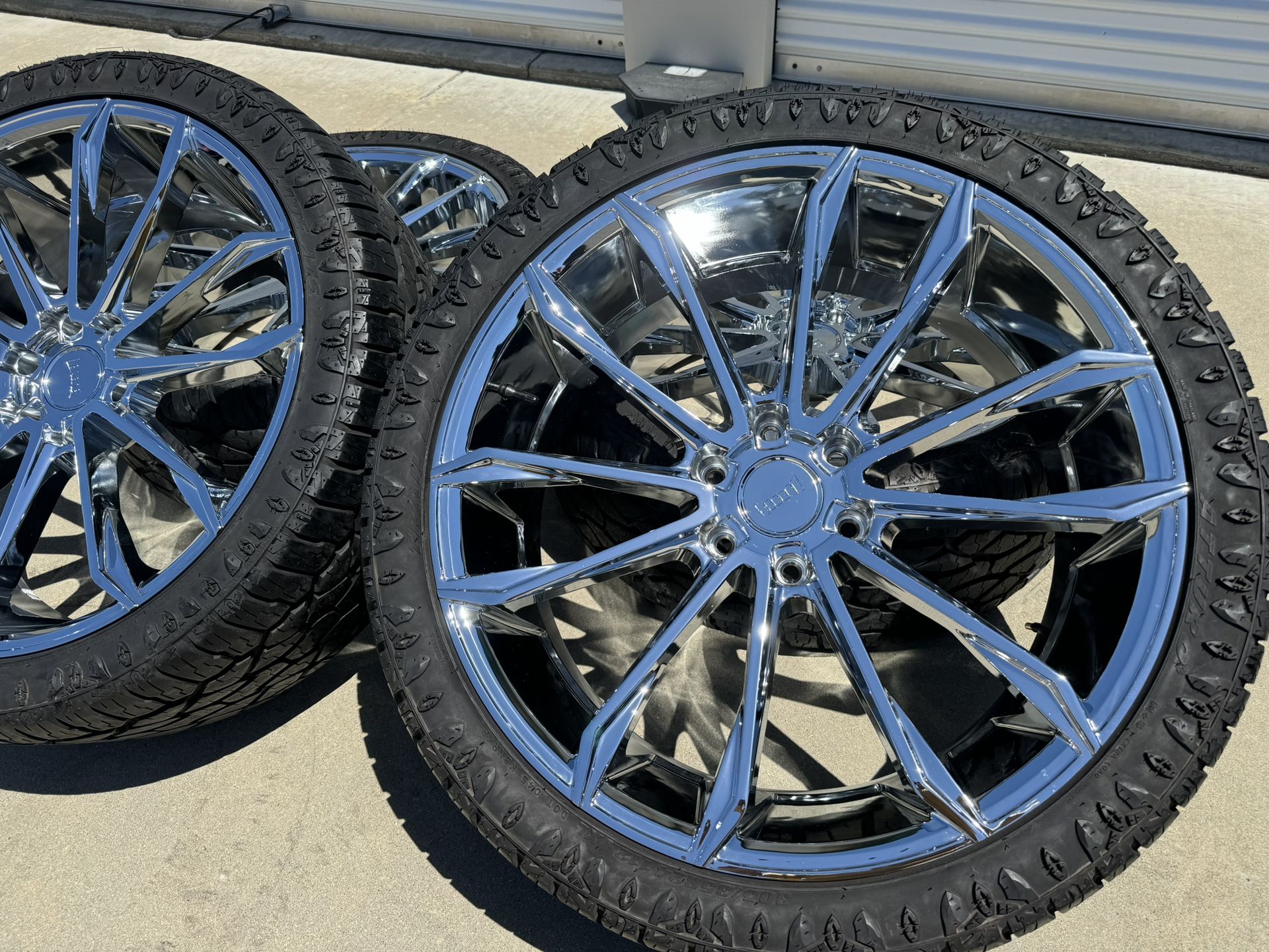 No trades / No offers Rims are brand new—-no scratches no curb rash, and most important No Cracks No Bends—- Rims retail for $822 + Tax (each)—-selling way under retail price (see last picture) DUB Chromed 22x10 with used Atturo 305/35R24 A/T——like 80-85% tread left Fits Chevy Silverado Tahoe suburban avalanche GMC Sierra Yukon Denali Keywords: Nitto Toyo Vogue lowered trokiando Al suelo motometal fuel Hablo español