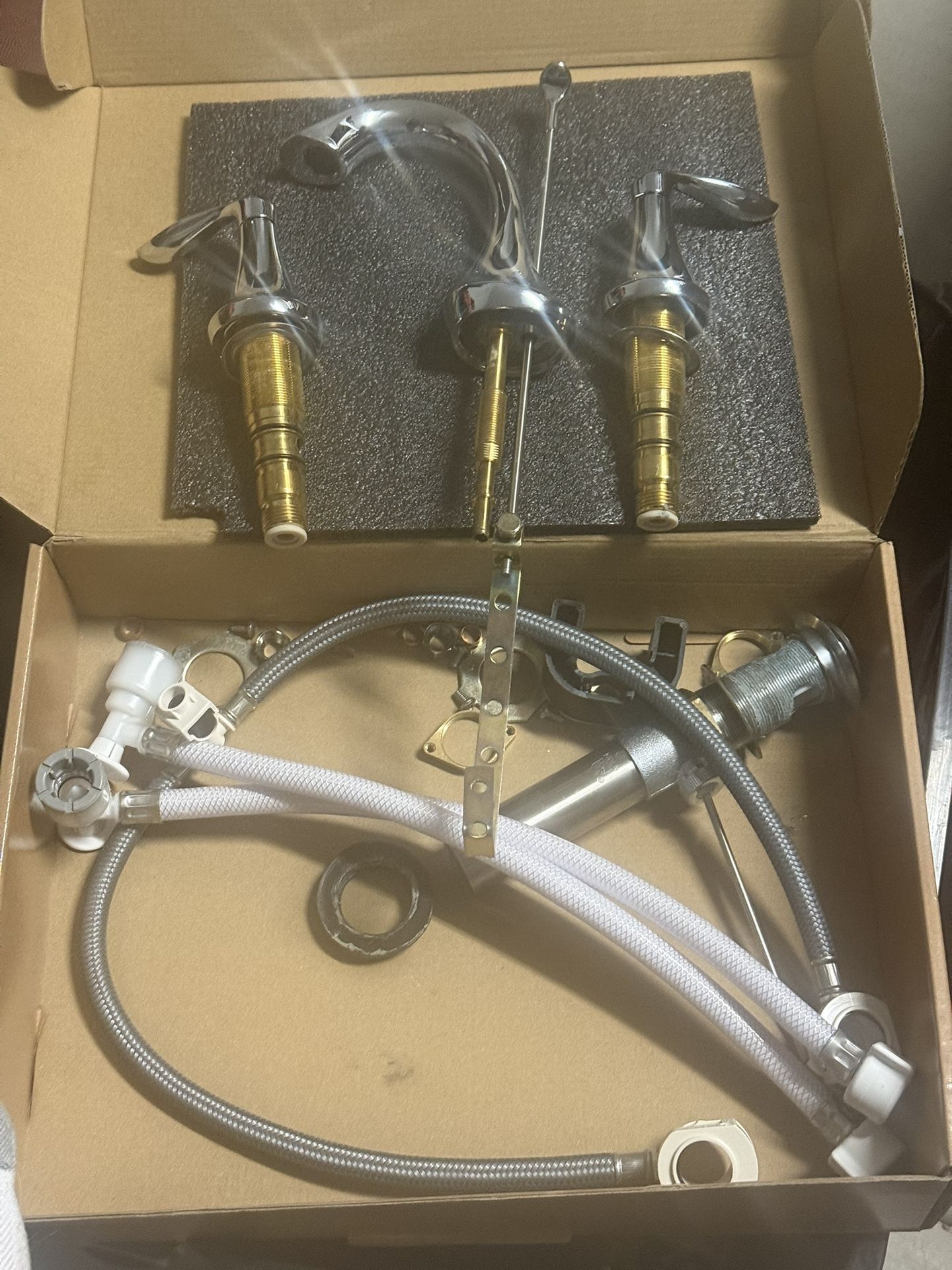 Selling our Moen chrome sink fixtures. Brand new. Came with our new home and we changed them out immediately to bronze. There’s 3 styles to choose from. One is a 3-piece set (spout and 2 handles are separate), another is a set where the spout and handles are one piece and comes with the drain plug, and then the last set is a single piece fixture but has no drain plug. Only asking $40 for the 3-piece set, $30 for the single piece set with the drain plug, and $25 for the set without a drain plug. Just make me an offer close and it’s yours. Please let me know if u are interested or have questions. Thank u.