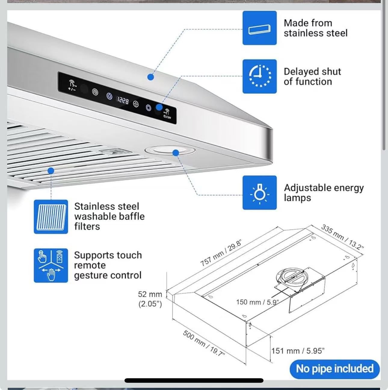 š„Great Dealš„Under Cabinet Range Hood 30 Inch, 750CFM Stainless Steel Kitchen Stove Vent Hood 3 Speed Exhaust Fan Touch/Remote/Gesture Control LED lights Time Setting Dishwasher-Safe Baffle Filters$140 36 inches $150 Only one left