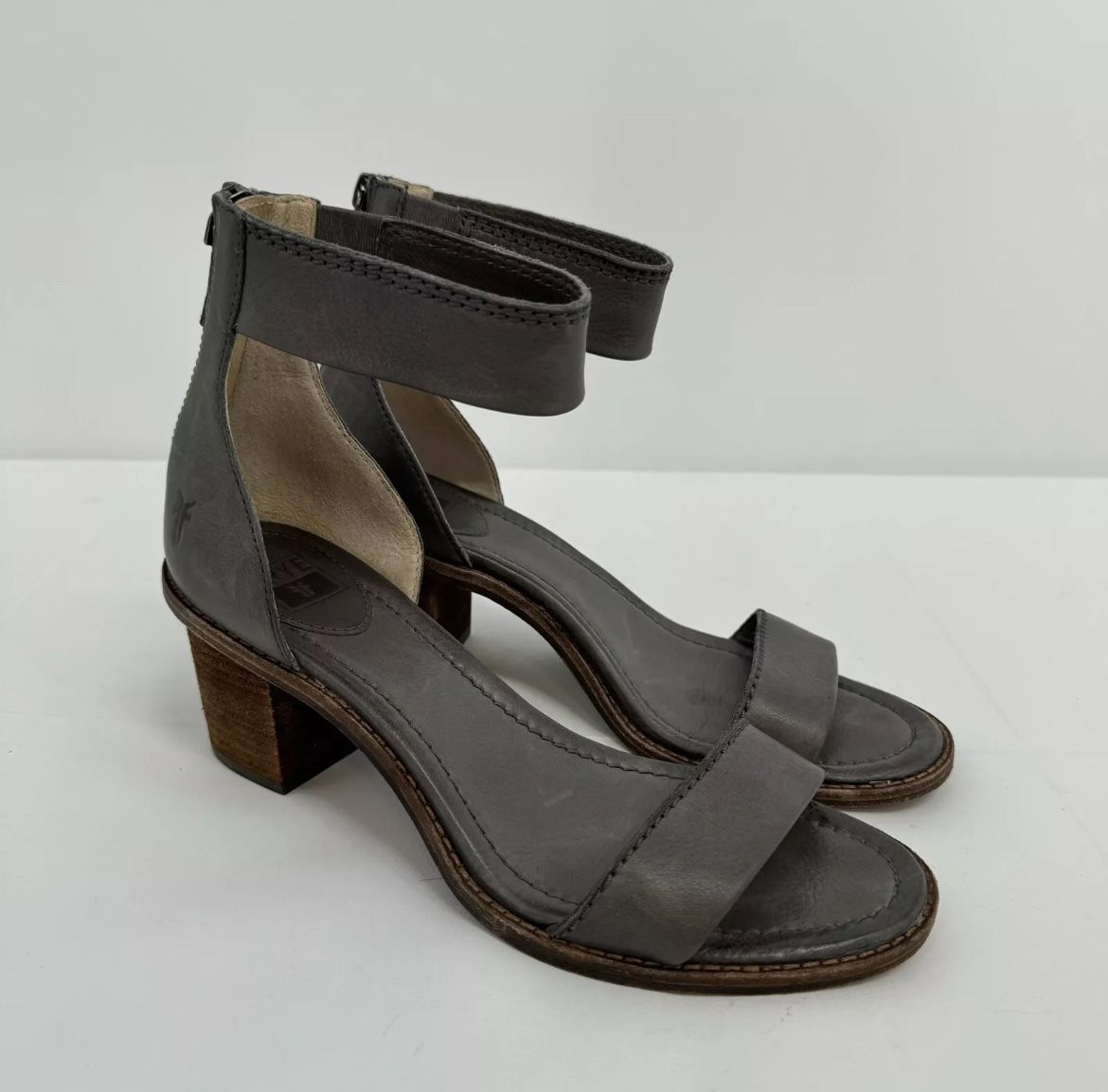 Frye Brielle Cognac Back Zip Ankle Heel Sandals black Size 8 Italian leather 2.5 comfy heel for long time wear Genuine Italian leather Like new