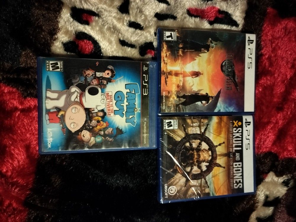 Selling Fantasy 7 Rebirth Ps5, Skulls And Bones Ps5, Family Guy Ps5, for 50 each. If interested I'm located in Pomona CA for pickup, have more stuff on my page to mix and match too. I do shipping thru PayPal to work stuff out, on offer up shipping I have to be firm because percentage is deducted. I'm also on Facebook marketplace too. You can also ask about the yard sell I have on the weekends.