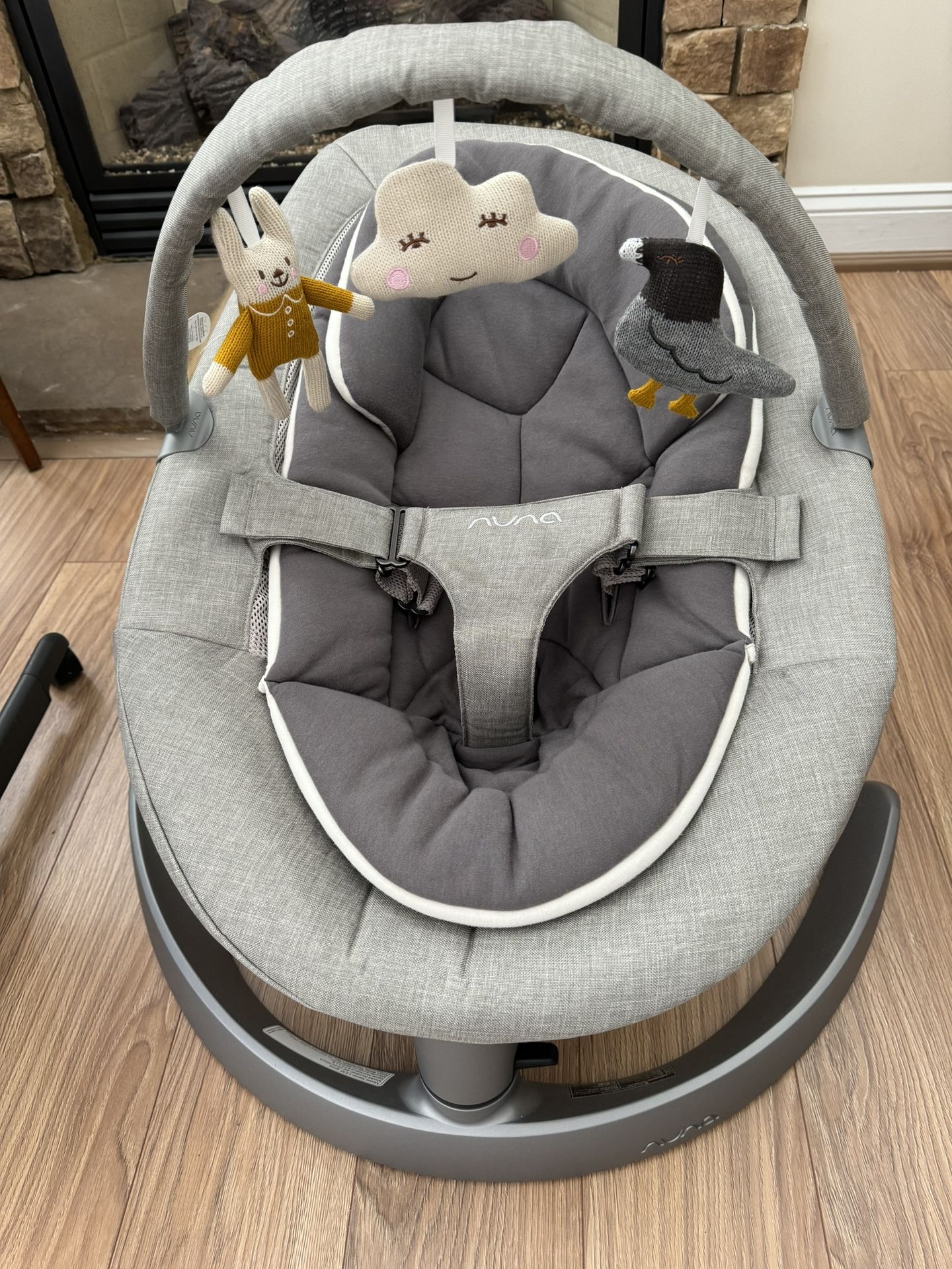 Used only a few times in excellent like new condition. Pet free and smoke free home. Very clean and no stain. Original price $300. Selling for $230. A revolutionary seat takes inspiration from the mesmerizing motion of a leaf floating in the breeze. Designed to grow with your baby from newborn to toddler to big kid, the noise-free, motor-free design maintains motion for more than two minutes with just a gentle push. The seat has three recline settings and can be locked in a stationary position for feeding or playtime. Once your child can sit upright and climb out of the seat, the chair can be moved to the stage two position. Remove the seat pad and harness, adjust the recline position and let your child relax in a seat that was made to provide comfort over time. Curated is a Nordstrom-exclusive color Accommodates children from birth to 130 lb. 17.7" x 28.7" x 28" 15.2 lb. Seat pad with 3-point harness is removable and transitions to a toddler seat Toddler seat with mesh backing provides added ventilation Organic-cotton insert fabric Textile/plastic/metal Imported OEKO-TEX®–certified materials free of harmful substances