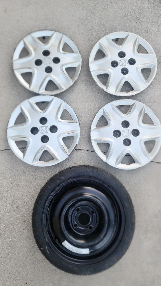 Honda Civic 2003 2004 2005 4 Hubcaps 4x100 or 4x3.94, and 1 Spare tire