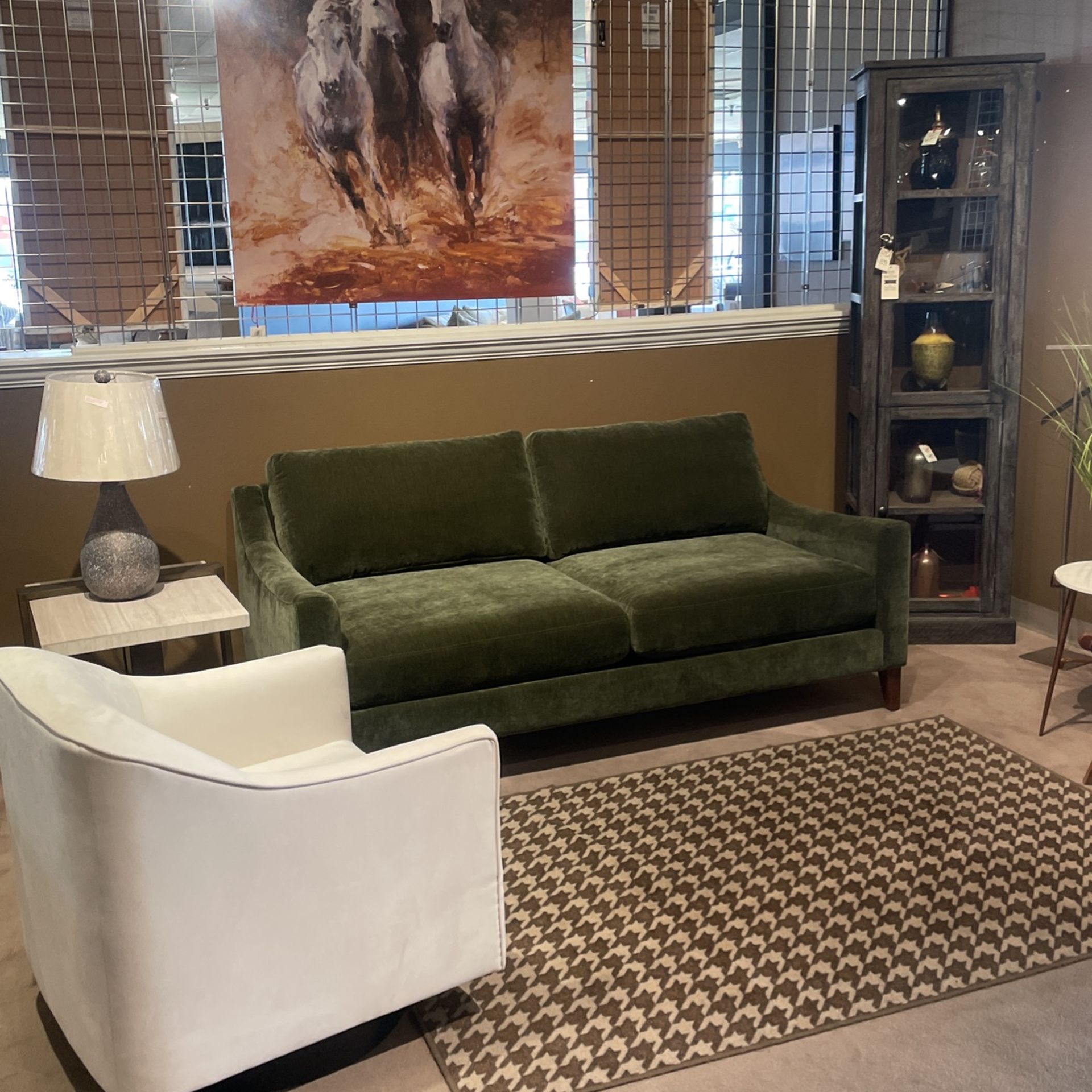 Again showing you a custom ordered sofa and abuse beautiful moss green. It measures 79 x 42 deep it’s gonna be sold off the floor ready to go home and there’s other pieces you could add to it if you need a loveseat, add pillows etc. etc. we’re here at 2836 showing you a custom ordered sofa and abuse beautiful moss green. It measures 79 x 42 deep it’s gonna be sold off the floor ready to go home and there’s other pieces you could add to it if you need a loveseat, add pillows etc. etc. we’re here at 2836 Road in Modesto. Please ask for Gloria Sisk Road in Modesto please ask for Gloria.